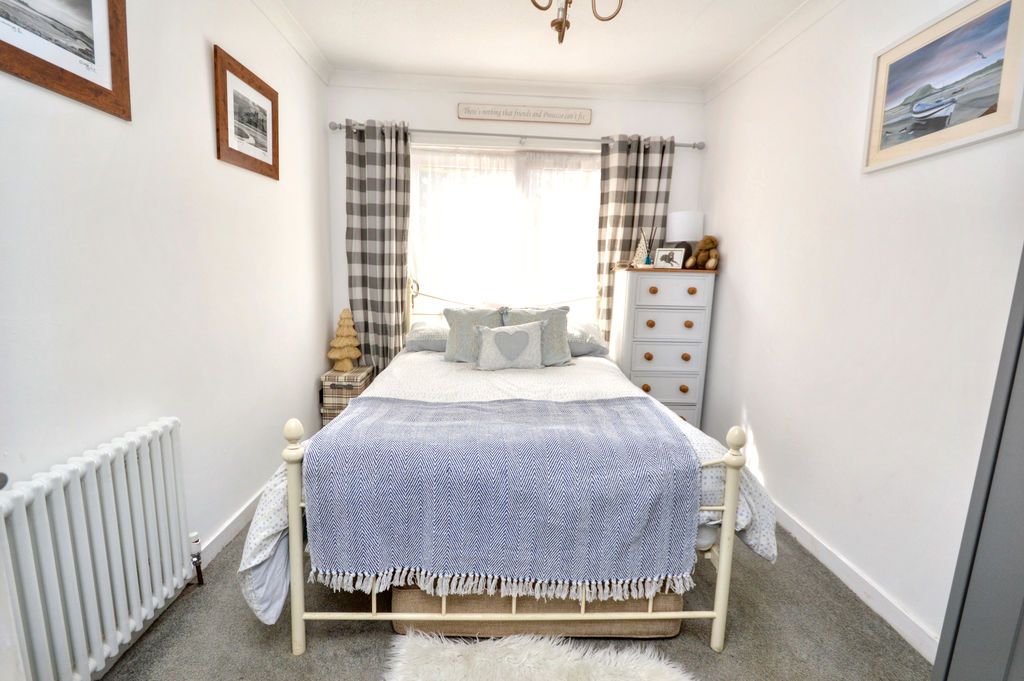 UPVC double-glazed French doors to garden | Radiator | Fitted wardrobes and bedside cabinets | Coving to ceiling