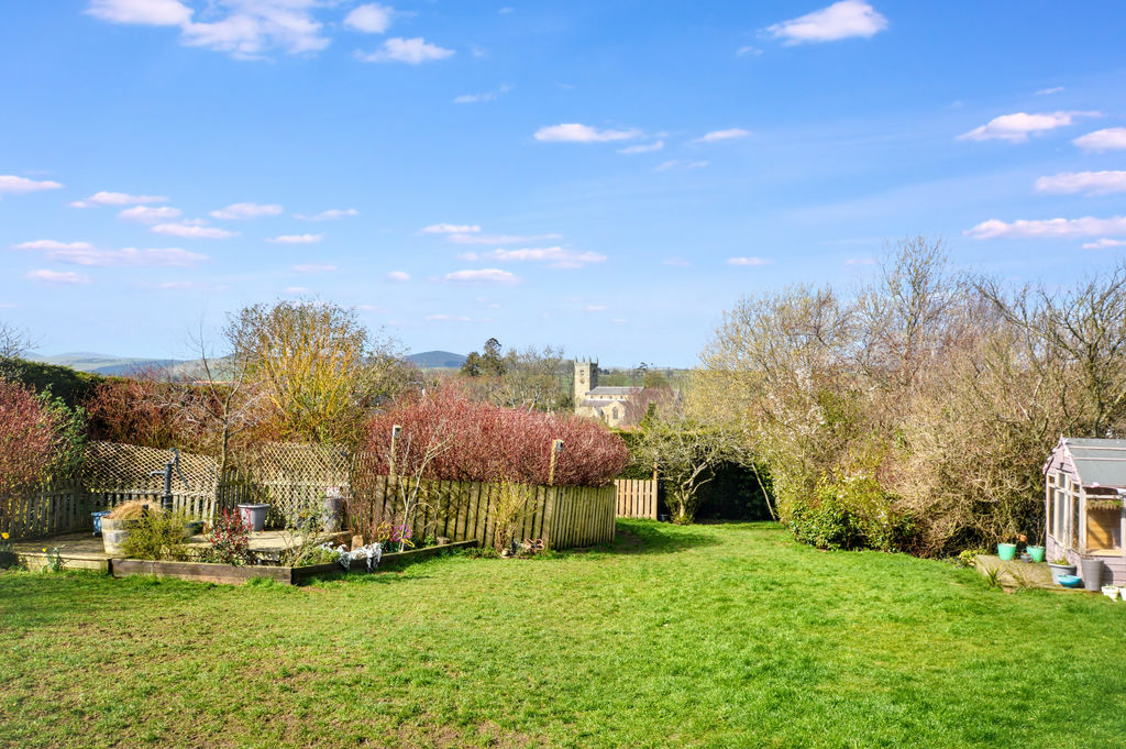 Extensive mature rear garden with a variety of fruit trees and shrubs, an open aspect overlooking the hills with distant views of the church in Whittingham, and a wildlife pond and separate nature area attracting a variety of wildlife, including birds, bees, frogs and butterflies