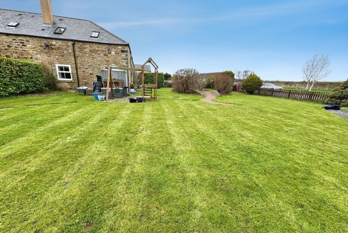 Nestled in the corner of The Grange at Middle Farm we are thrilled to present “Lindisfarne House” a gorgeous four bedroom barn conversion with immense character and charm. Enjoying uninterrupted views over open countryside, this fabulous family home is refurbished to the highest of standards and enjoys manicured, wrap around gardens. Step inside and you are greeted with a welcoming entrance hall with staircase to first floor and convenient guest w.c. The lounge offers both comfort and style with a recently installed log burner perfect for those winter nights. One of the highlights of the home is the recently installed kitchen, beautifully appointed with shaker style units and built in appliances, a delightful place for culinary endeavours. There is also a second reception room currently used as a dining room ideal for entertaining family and friends with lovely views over the courtyard garden.