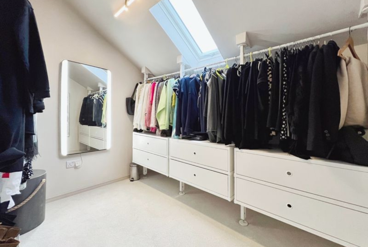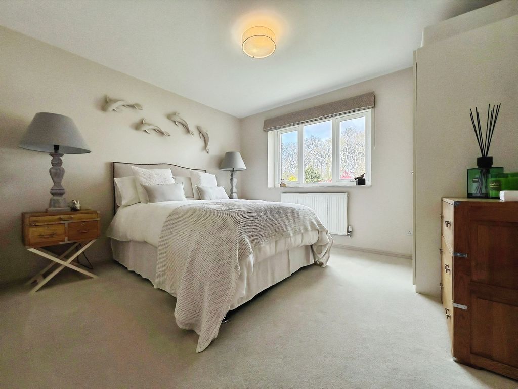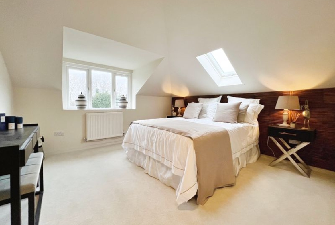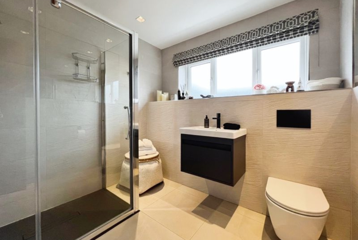 The property hosts five bedrooms, all of them doubles. The primary bedroom is a standout, with an en-suite bathroom which features a stunning bathtub and walk in shower unit as well as a walk-in closet.