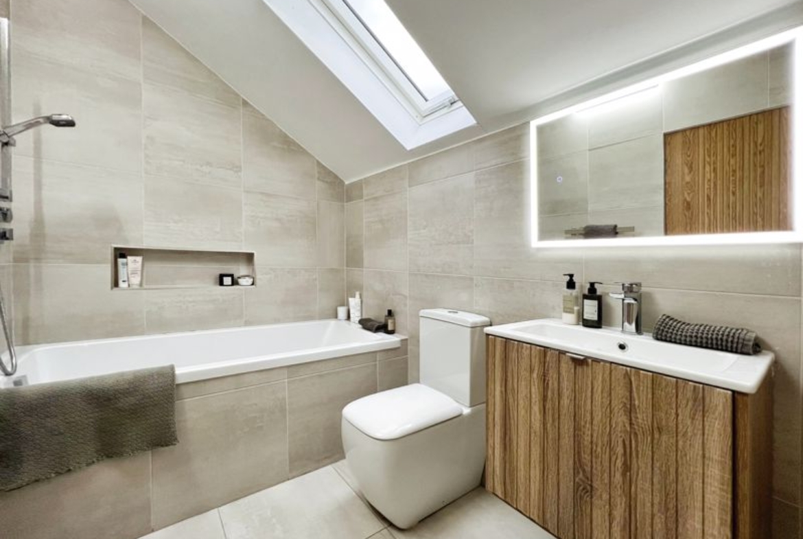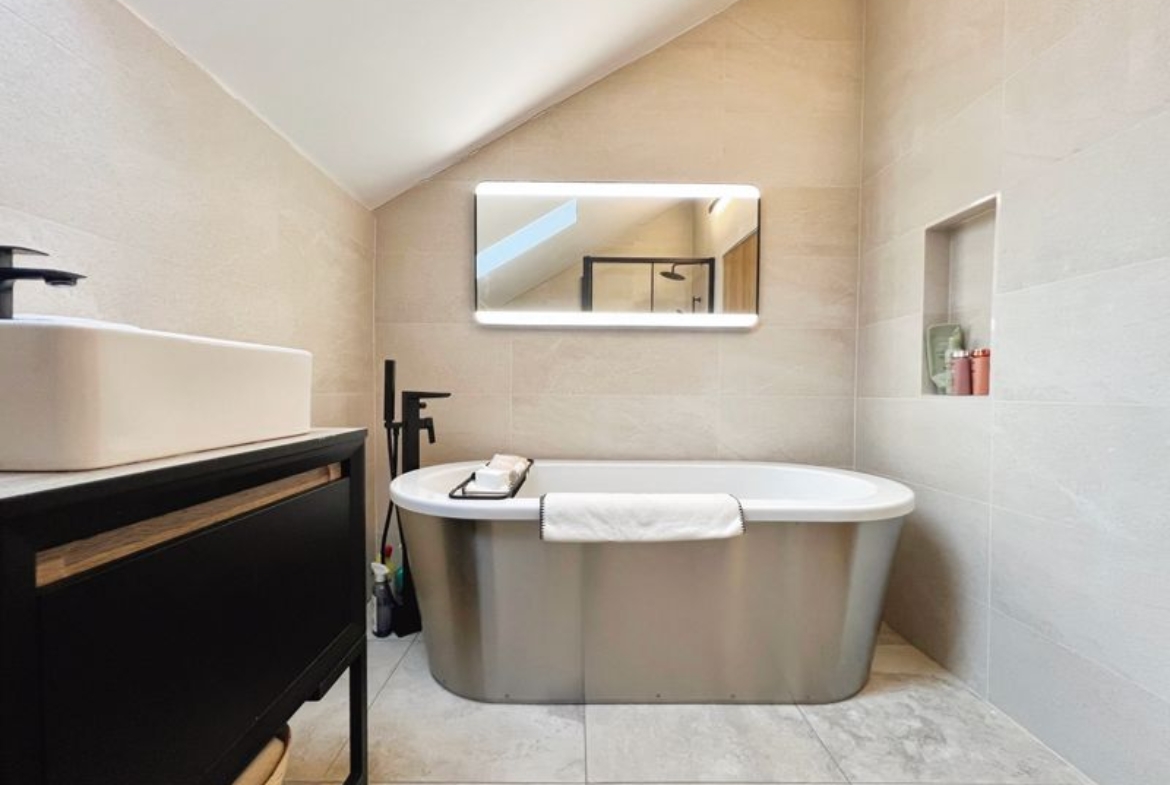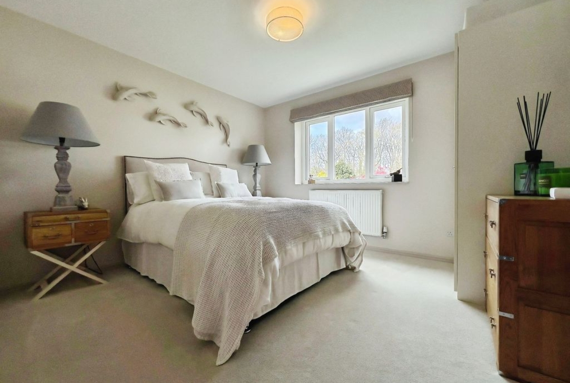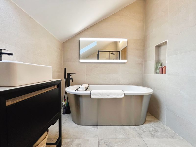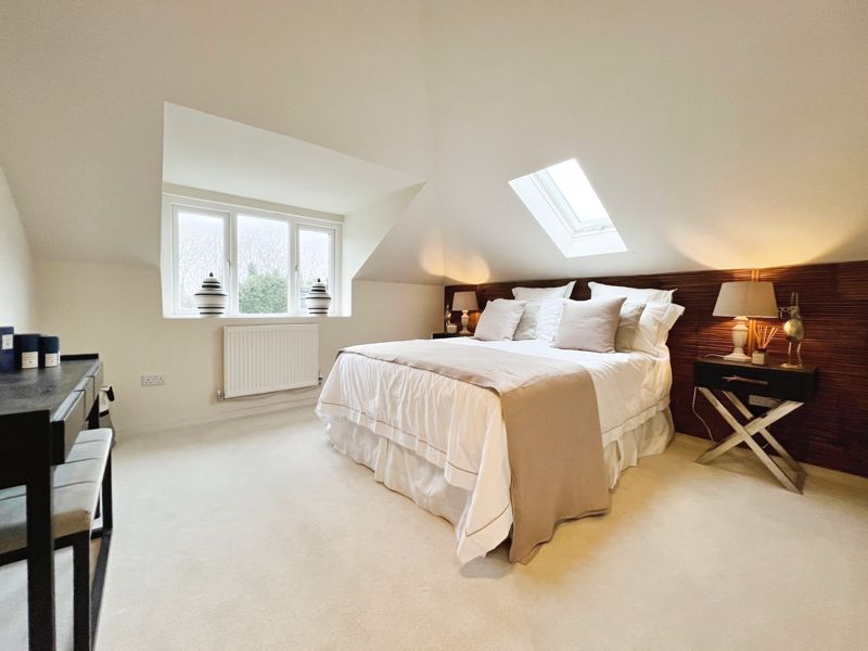 The property hosts five bedrooms, all of them doubles. The primary bedroom is a standout, with an en-suite bathroom which features a stunning bathtub and walk in shower unit as well as a walk-in closet.