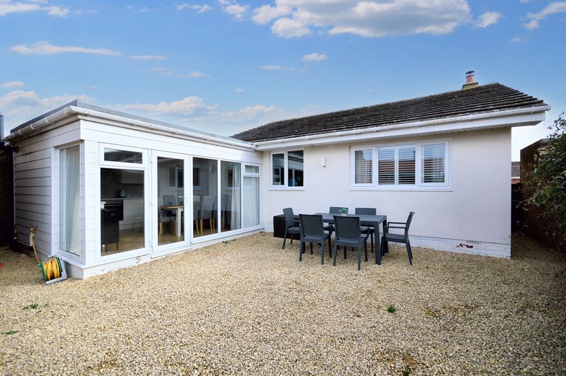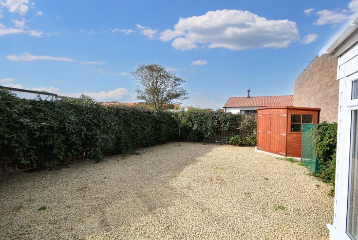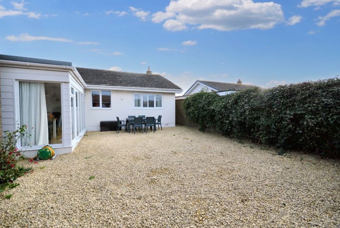 The bungalow features three spacious double bedrooms, including a principal suite with a fully tiled en-suite. All bedrooms are light and airy, benefitting from plantation shutters, enhancing privacy while adding a touch of elegance.