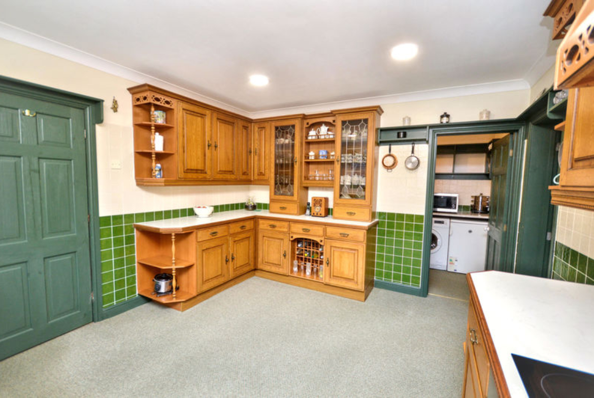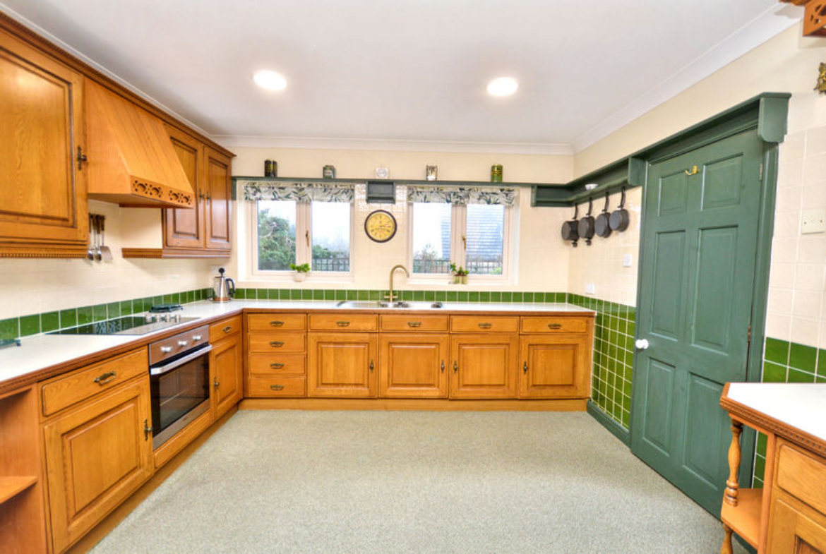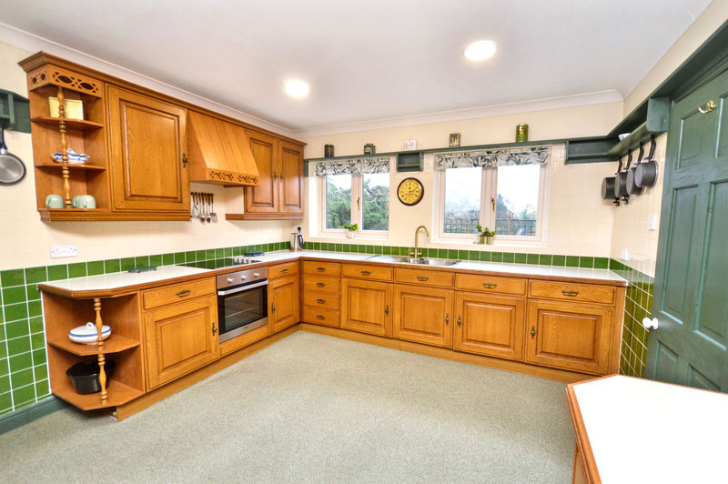 Fitted wall and base units incorporating; electric hob, electric oven, 1.5 stainless steel sink | UPVC double-glazed windows | Part-tiled walls | Delft rack | Coving to ceiling | Ceiling lights
