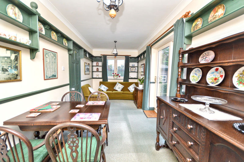 Feature Inglenook fireplace incorporating a multi fuel stove and stone hearth | UPVC double-glazed windows with dual aspect | Radiators | Coving to ceiling | Double doors to hall | Door to dining room
