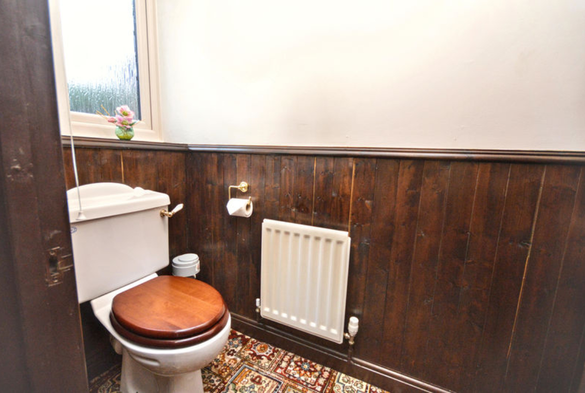 Close coupled W.C | Wash-hand basin | Fitted cabinet | Radiator | UPVC double-glazed frosted window | Half-panelled walls