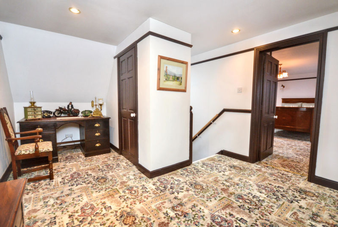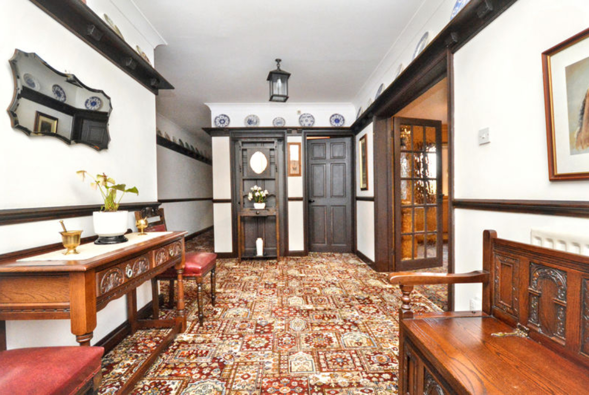 While the property would benefit from updating the fixtures and fittings, it presents a rare opportunity for a purchaser to modernise and personalise, creating a bespoke home within an established and exclusive setting. Externally, the house sits within a private and secluded plot, offering a mature garden with a good degree of privacy. Further benefits include a detached double garage, accompanied by two large attached workshops and loft storage space, ideal for hobbies, storage, or office space.
