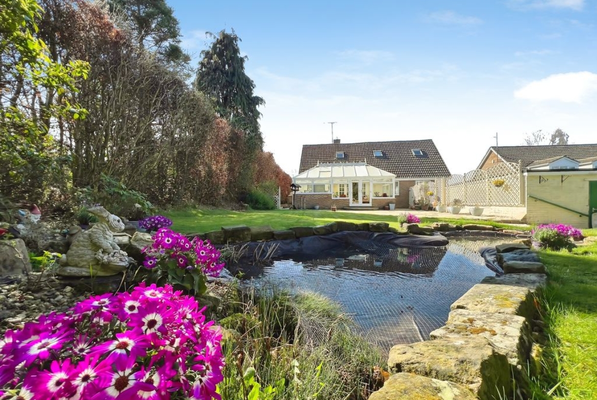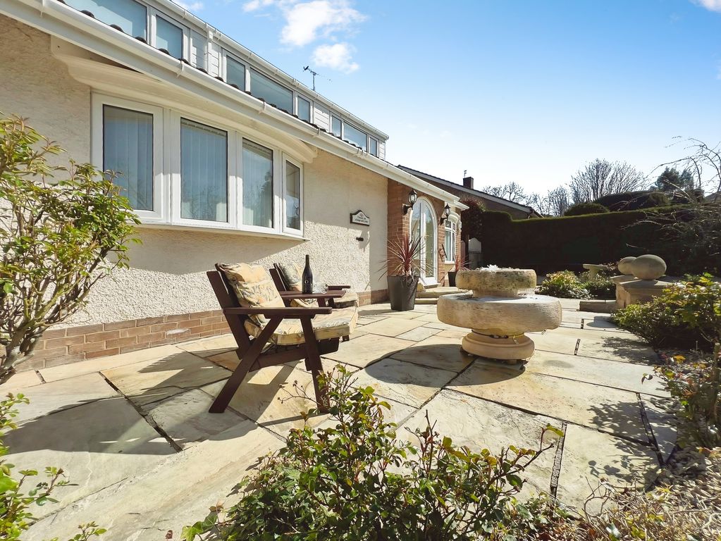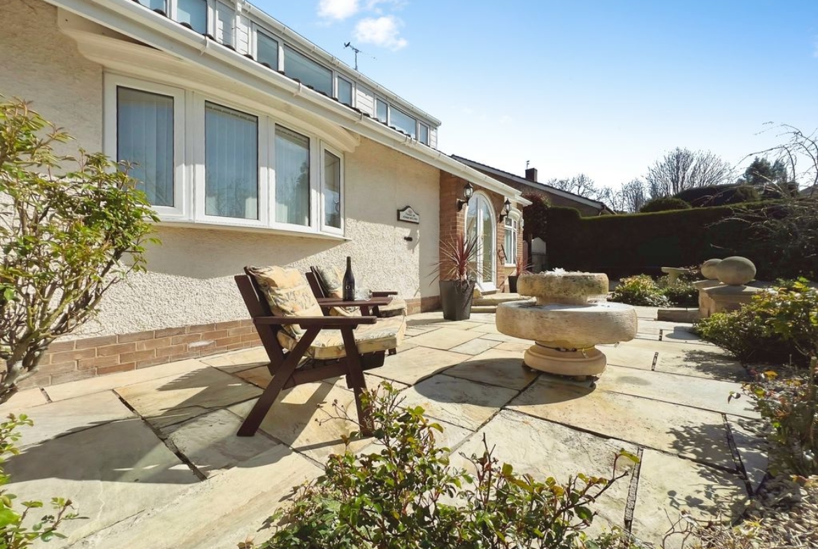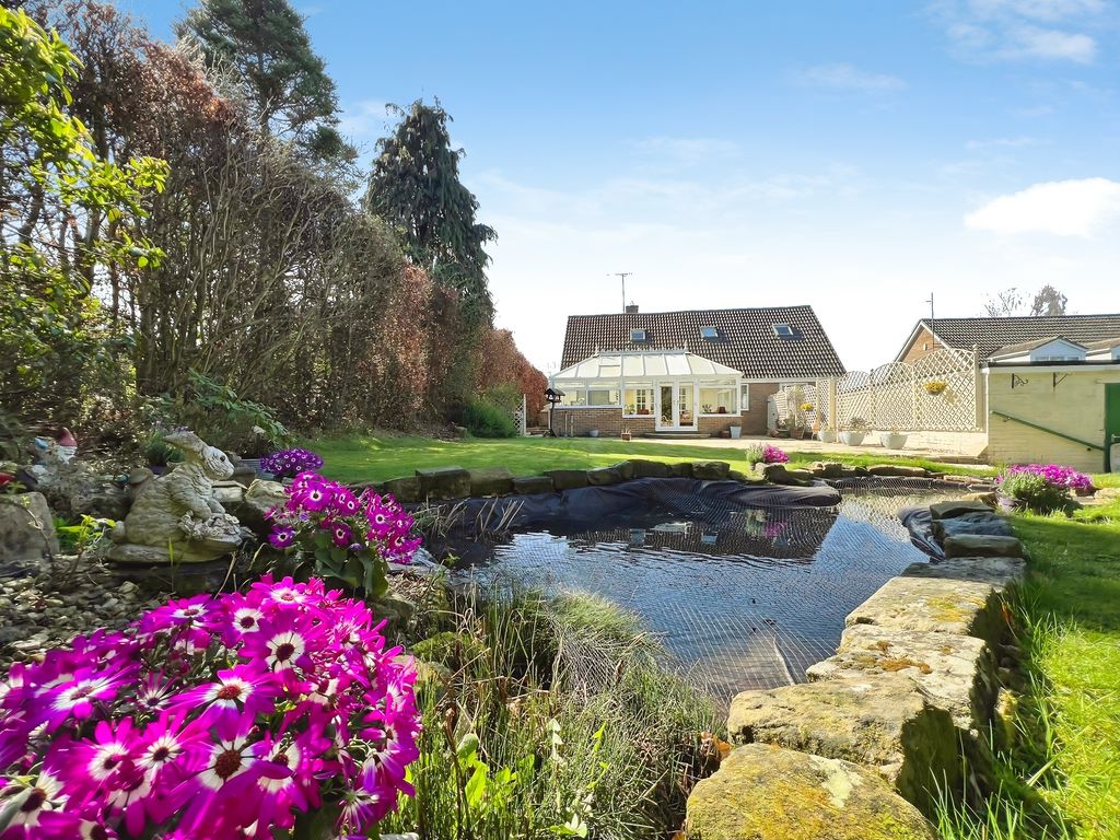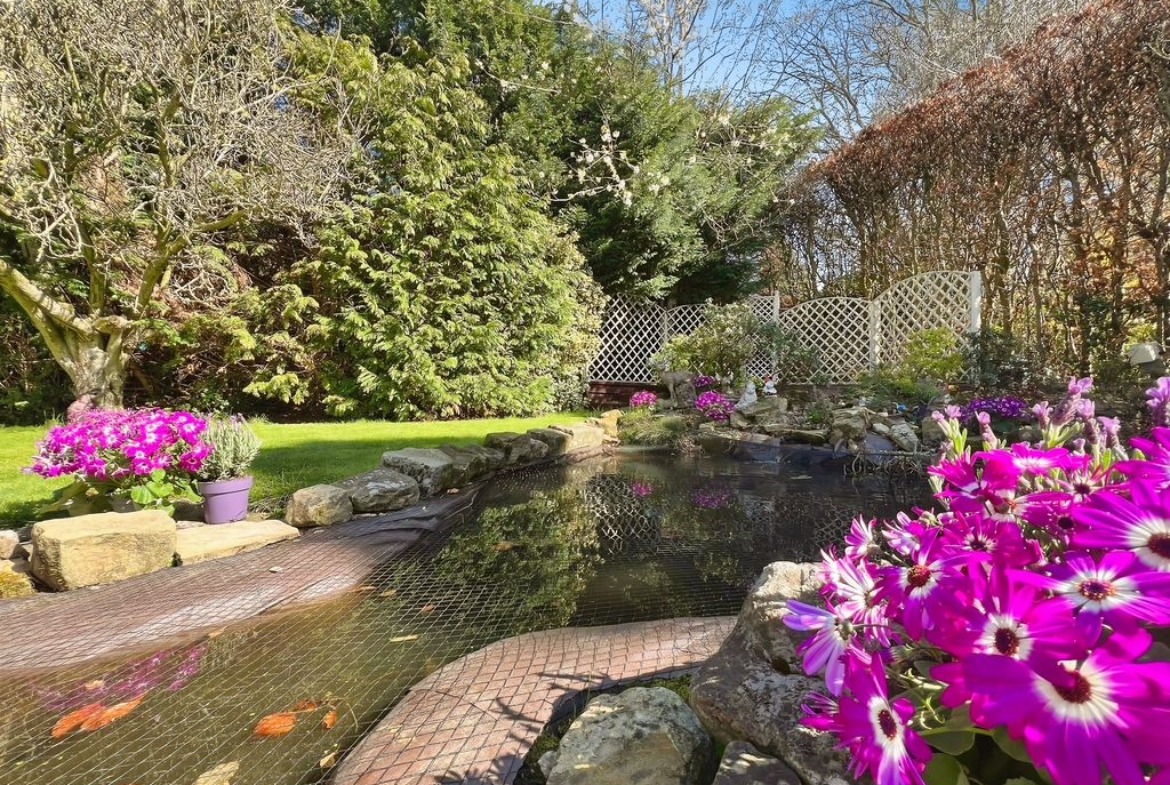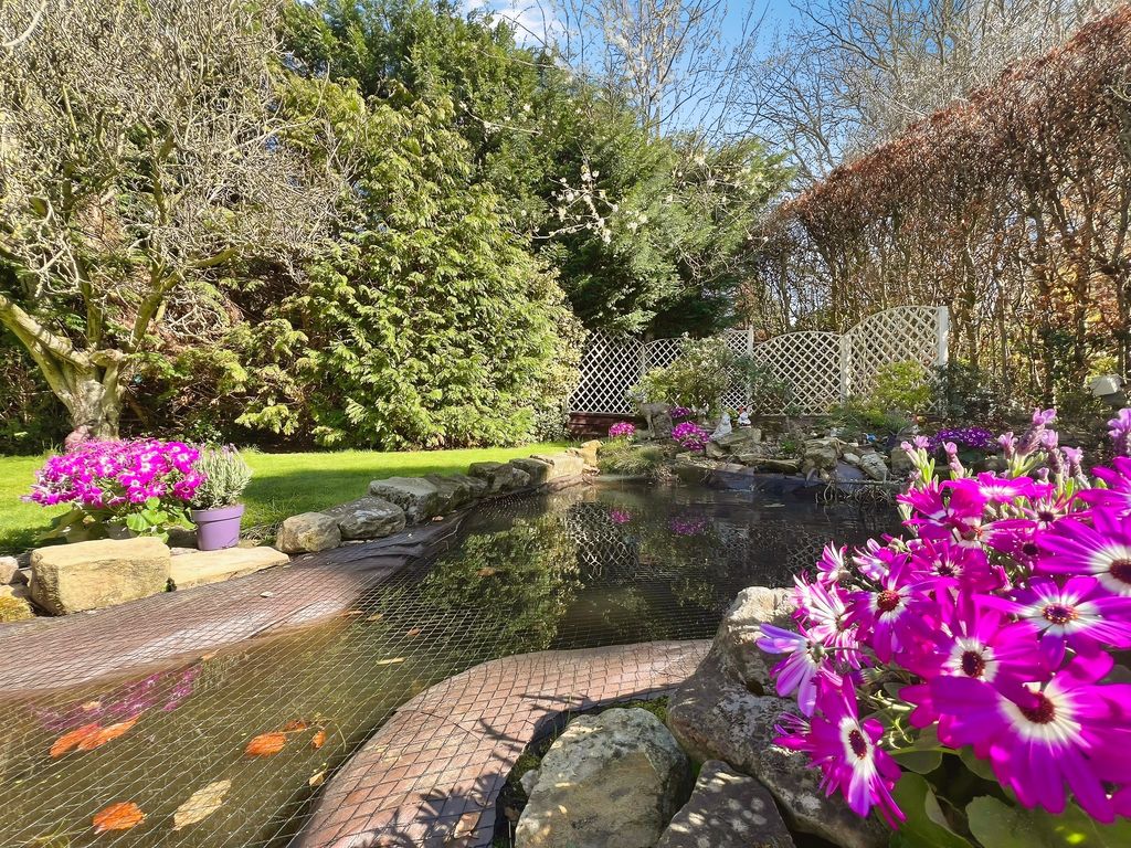 The house enjoys a C-rated EPC and falls under council tax band F. Among its unique features are an attractive garden, a large patio area to the front, a further patio at the rear, pond, and raised bedding planters. The double garage, behind electric gates, provides additional space for parking or storage.