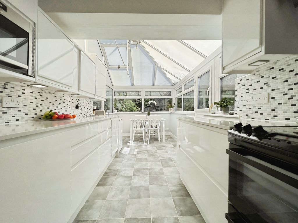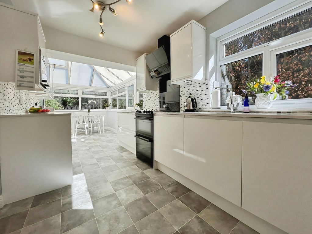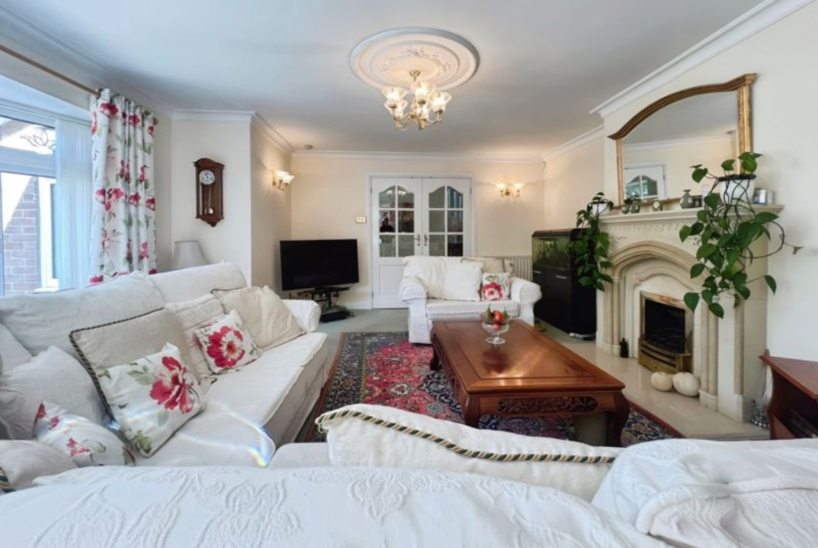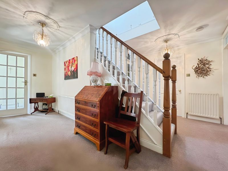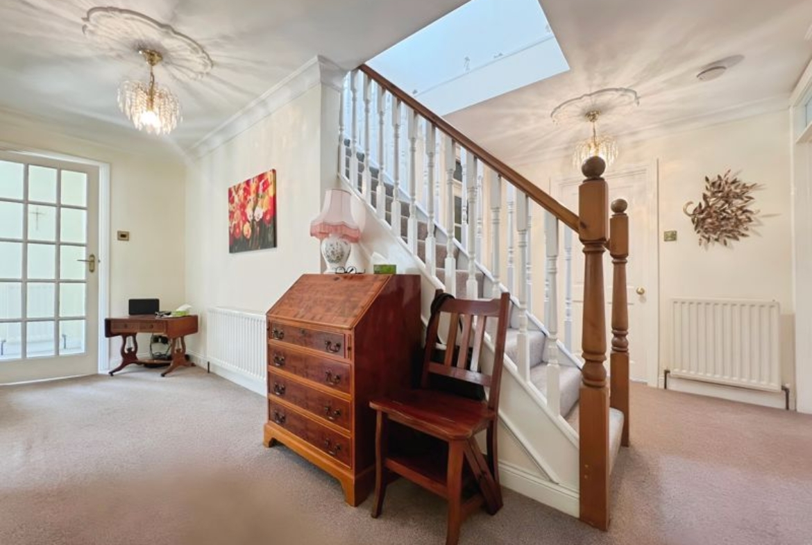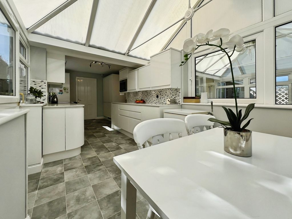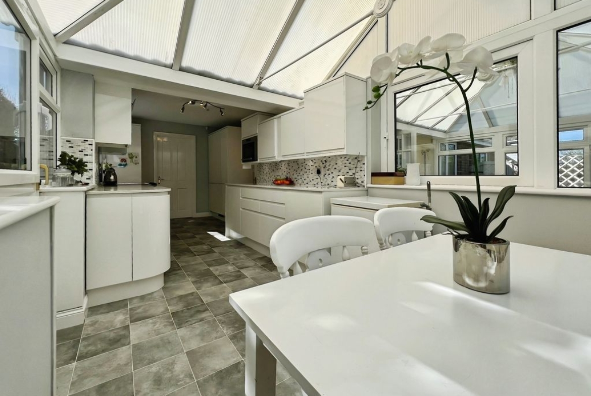 This neutrally decorated detached house is set on a quiet cul-de-sac and offers comfortable accommodation ideal for families. The property features three versatile reception rooms, including a reception room with a large bay window, wood floors, and a fireplace, creating a welcoming focal point. The dedicated dining room provides access to a conservatory and there is a separate home office, well suited for those working from home.