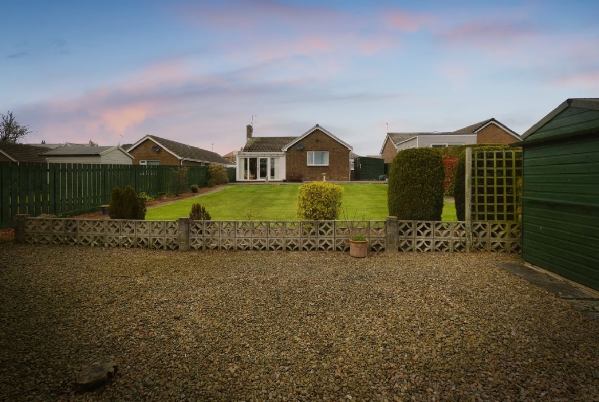 Outside, the bungalow stands behind a lawned garden and the driveway accesses the garage and a paved pathway leads you to the entrance door. Primarily laid to lawn the size of the rear garden is a real show-stopper, bordered by timber fencing and with a paved patio which is a lovely place for al fresco dining, summer barbeques or simply to enjoy the sunshine in peaceful surroundings. A garden shed will be left for storage of outdoor furniture and tools. Warkworth is a particularly charming village with the 15th century Castle at the heart of its centre which hosts many events during the spring and summer months including Easter Quest, a fun-filled family weekend in the search of eggs and the popular Warkworth Show.