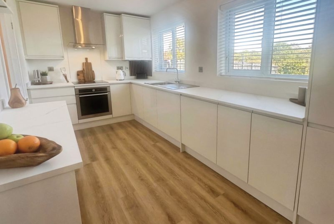 At the heart of the home, the newly fitted kitchen boasts a good range of fitted units with integrated appliances, blending practicality with style to create a space that’s a pleasure to cook and gather in.