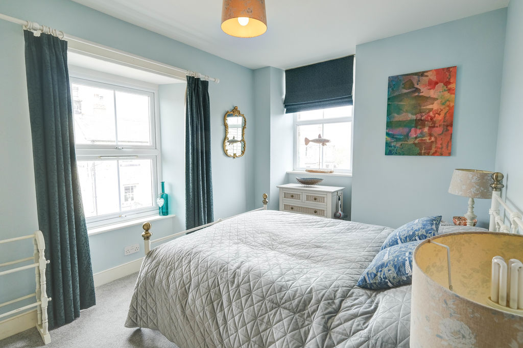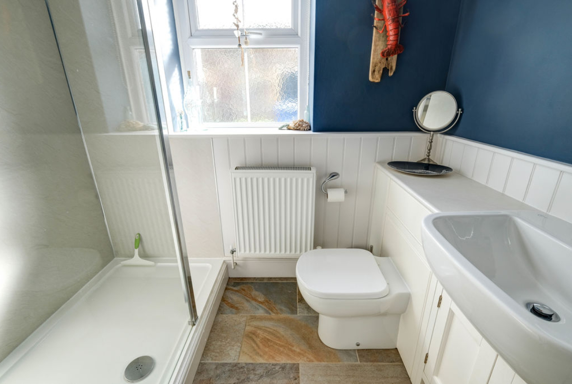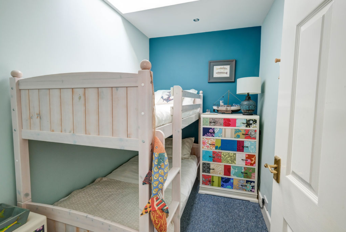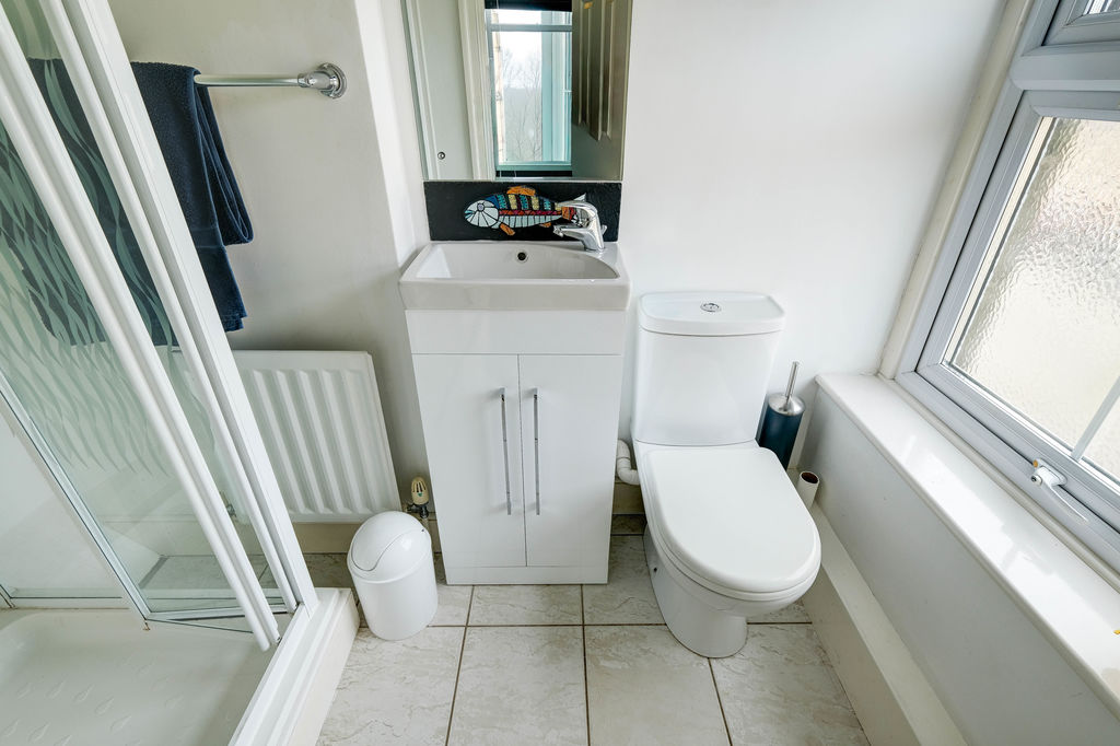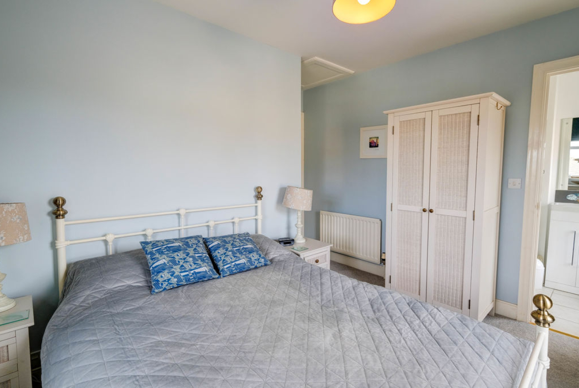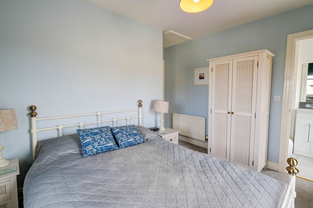 Stairs to the first floor accesses the two bedrooms. The main is a good-sized double with dual aspect windows and boasts a lovely en-suite shower room. The second bedroom is a single however it does have space for drawers/wardrobe.