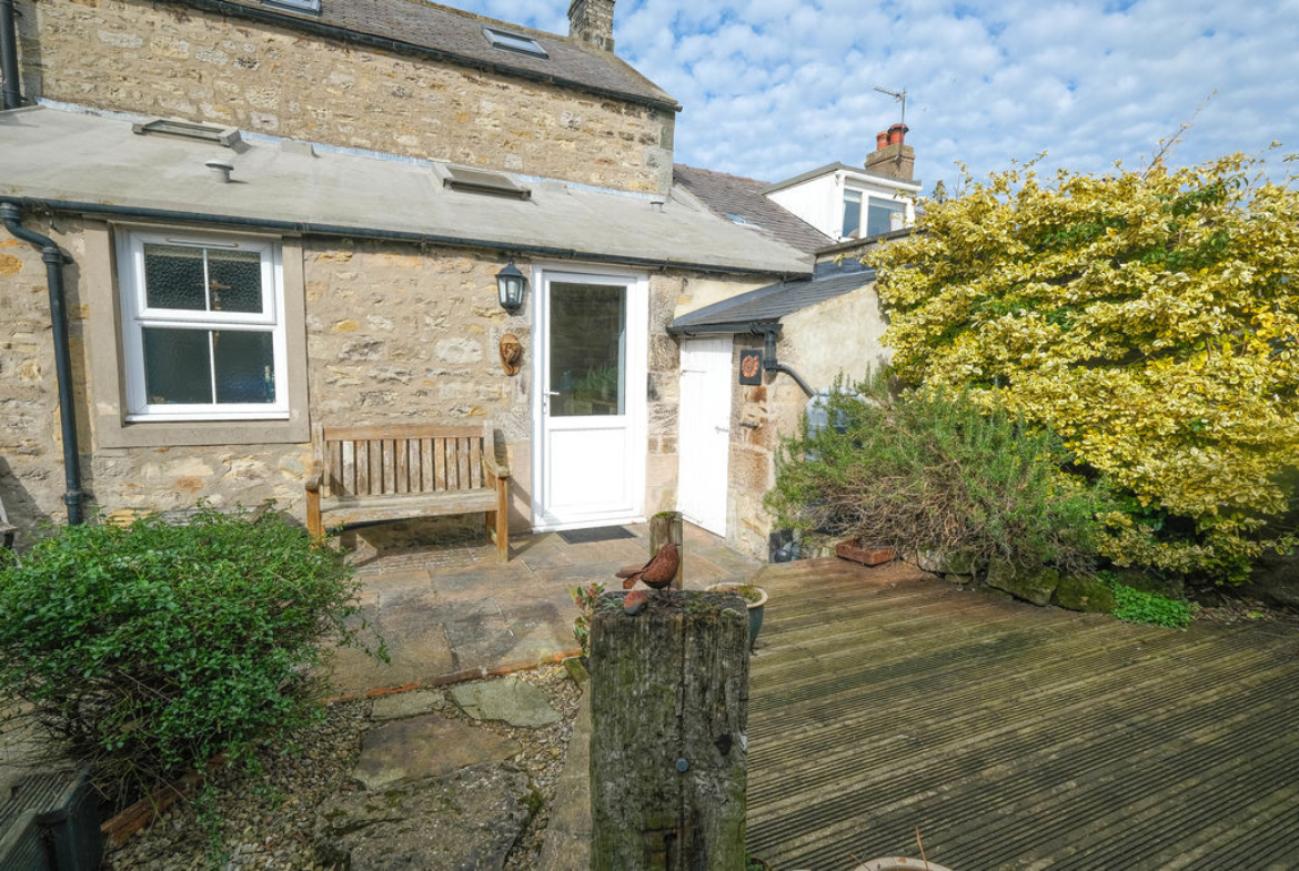 Standing back from the roadside there are steps from the pavement leading to the entrance door. To the rear there is a courtyard with a sunny aspect and a raised decking area which is a fabulous outdoor space for al fresco eating or simply to sit and enjoy the peace and quiet. The outbuilding provides an excellent storage space.