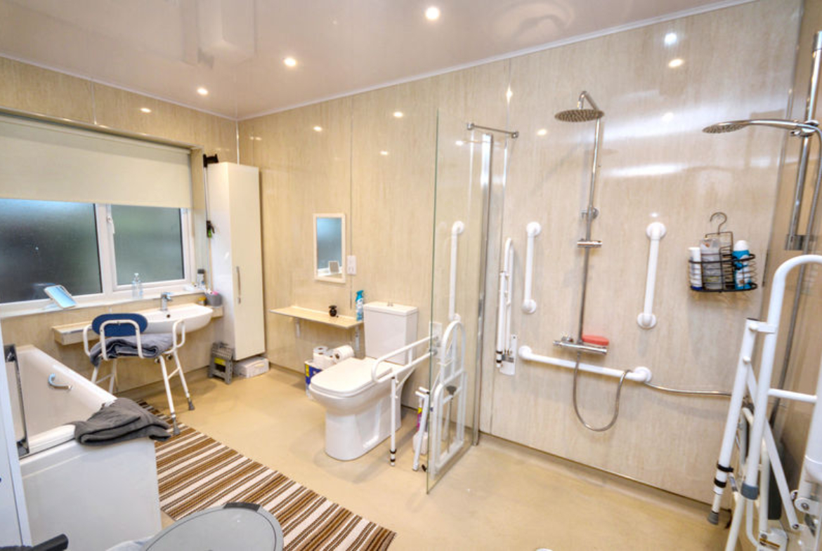 Internally, the accommodation includes a separate, spacious living room and a well-proportioned dining kitchen with doors opening to the rear garden, creating a practical space for everyday living and entertaining. The master bedroom is sizeable and benefits from a large ensuite wet room, which features both a bath and a walk-in shower fitted with accessible adaptations. In addition, the former garage to the side has been repurposed and is used by the owners as a bedroom space, it has an ensuite shower room offering useful flexibility. A utility room, and a garage to the side of the bungalow, provide additional functional space.