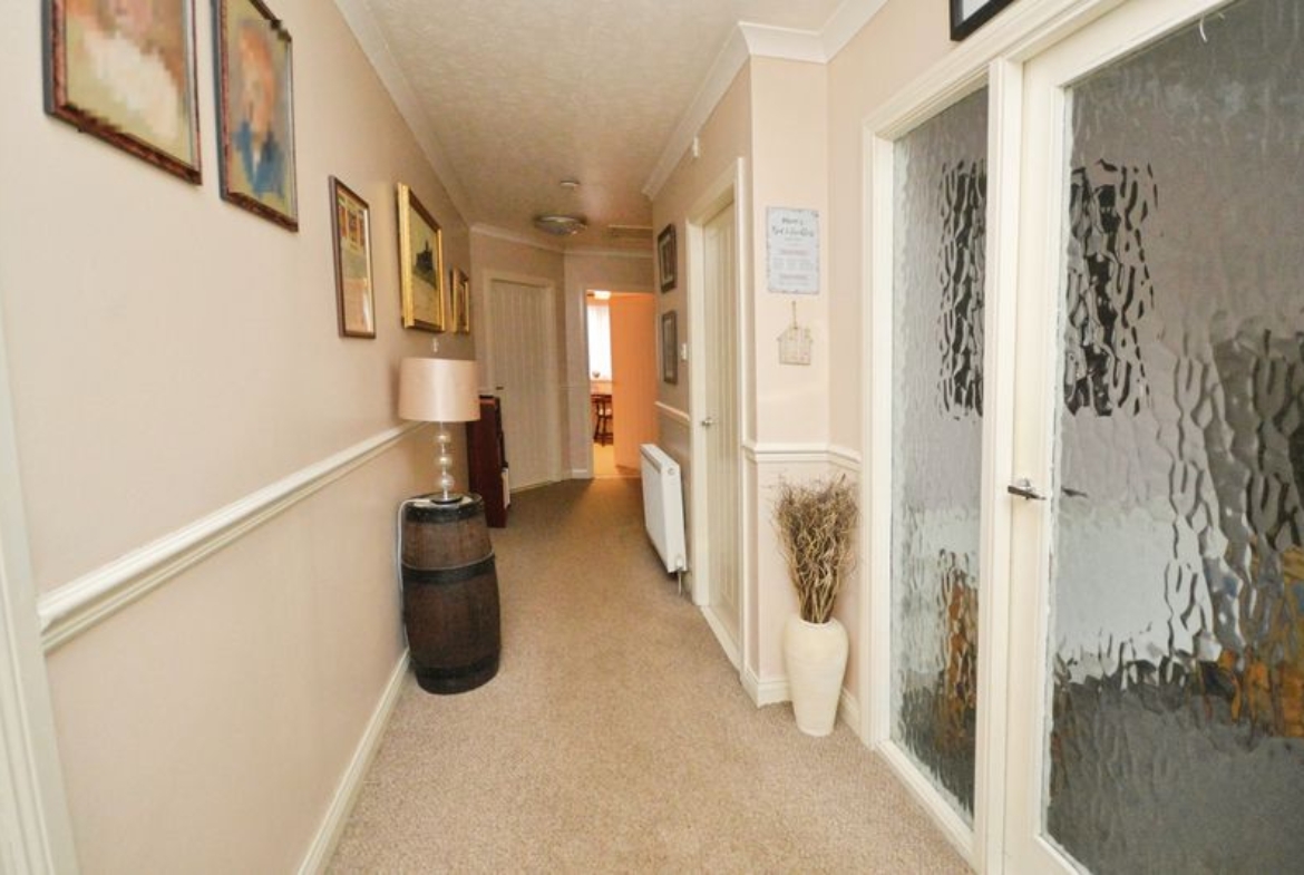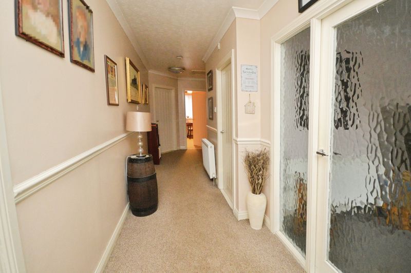 UPVC double-glazed entrance door | Coving to ceiling | Glazed door & window through to Hall