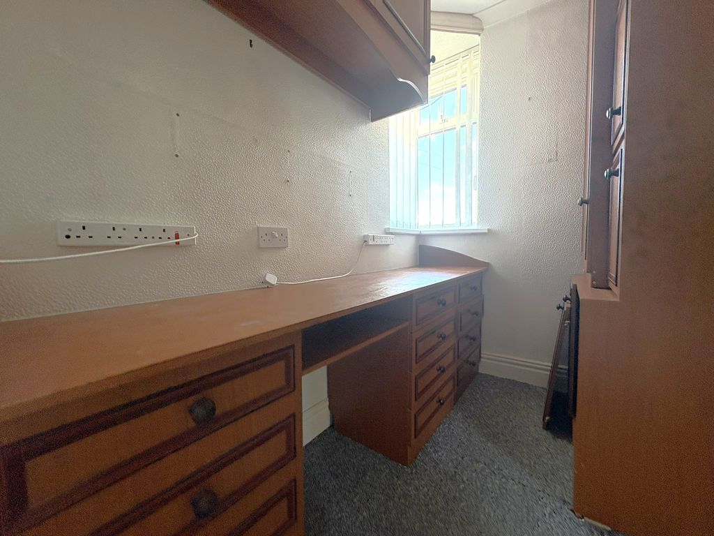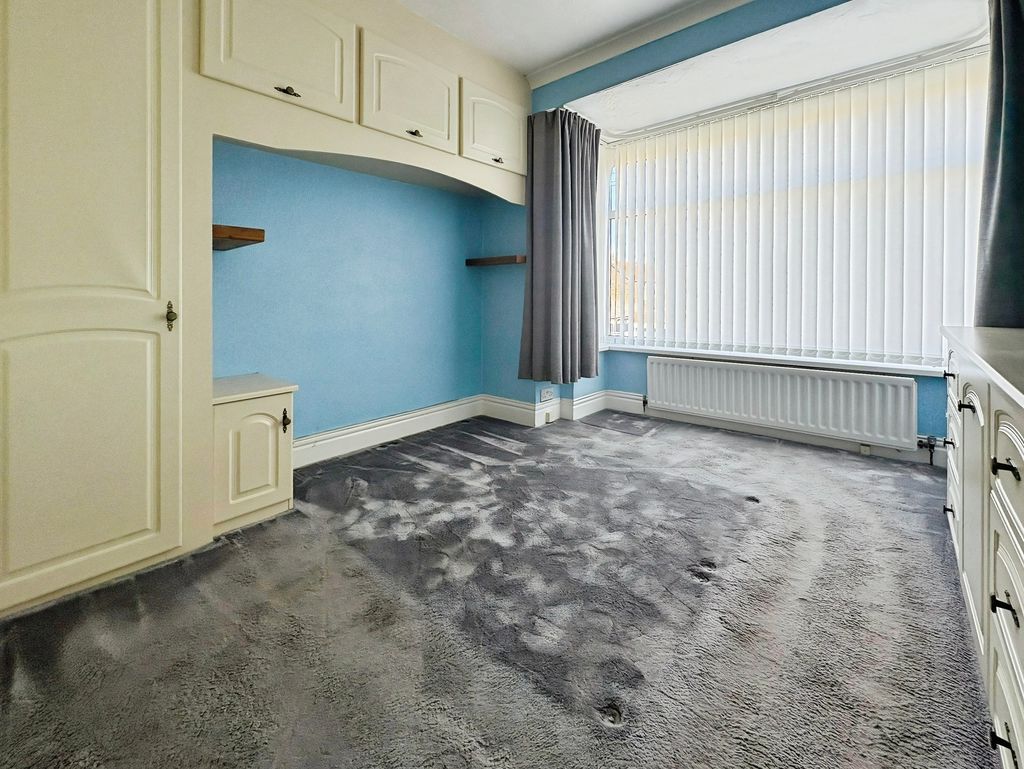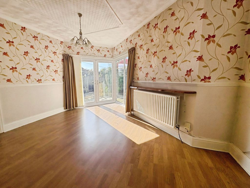 Positioned behind a driveway and garage, this four-bedroom semi-detached home offers generous proportions and now presenting a clear opportunity for thoughtful updating. The ground floor is arranged offers generous living space including a spacious bay-fronted living room with feature fireplace, a separate dining room opening onto the rear garden, and a fitted kitchen with adjoining utility area. To the first floor there are four bedrooms, with fitted wardrobes to the principal bedroom, alongside a family bathroom. Upstairs, the property offers four bedrooms. A bathroom completes the accommodation. Externally, the rear garden has been designed for ease of maintenance, with paved areas and established planting creating a private outdoor space. To the front, a driveway provides off-street parking and leads to the garage.
