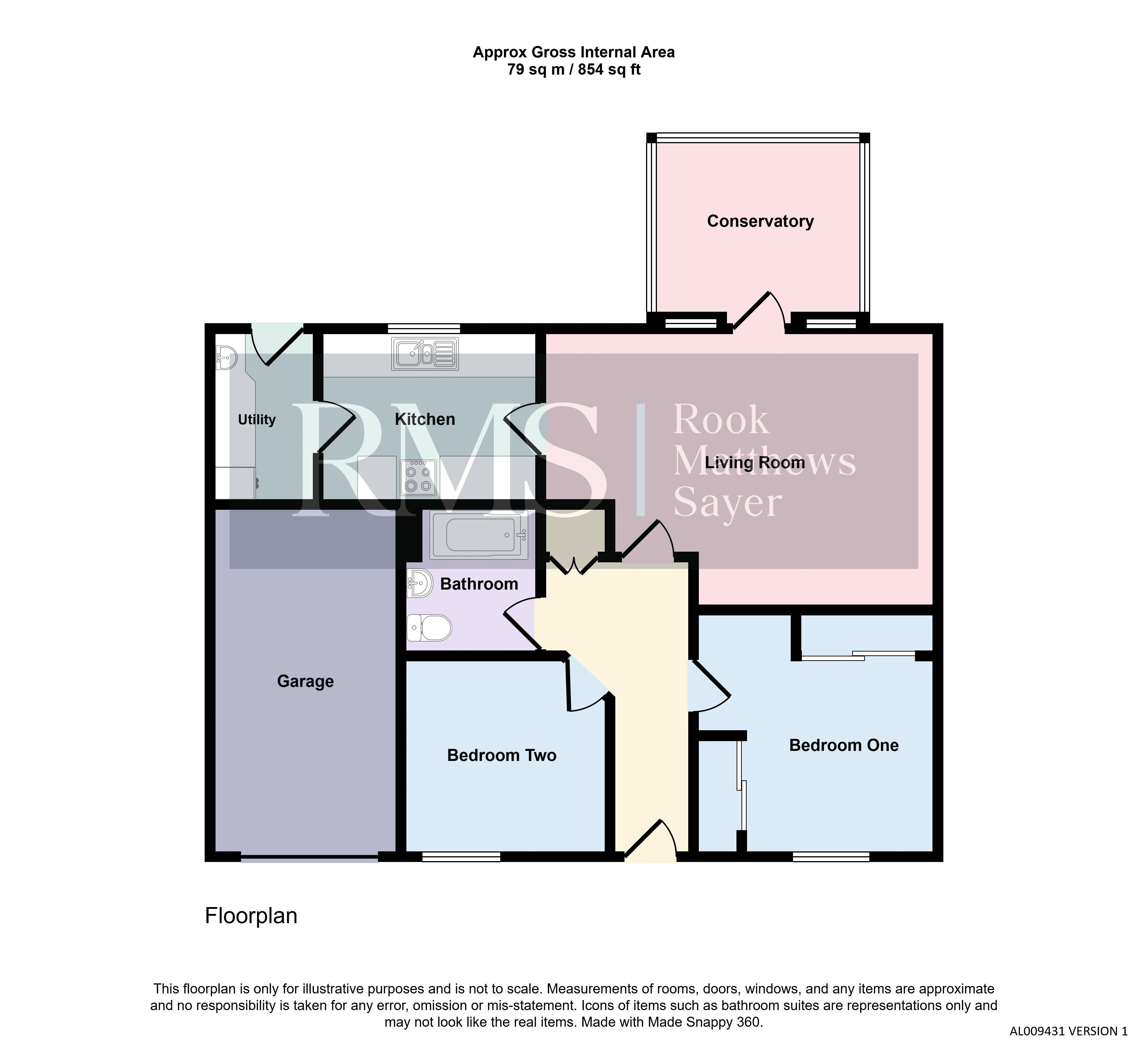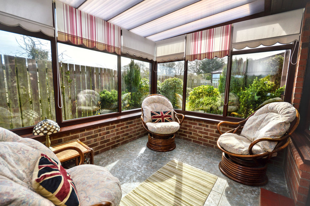 Inside, the accommodation is well laid out and thoughtfully designed. There are two spacious double bedrooms, while the living room is situated at the rear of the property, leading through to the bright conservatory that enjoys views over the garden – perfect for enjoying the outlook throughout the seasons. A galley-style kitchen connects the living space to a useful utility area, enhancing the practicality of the home.