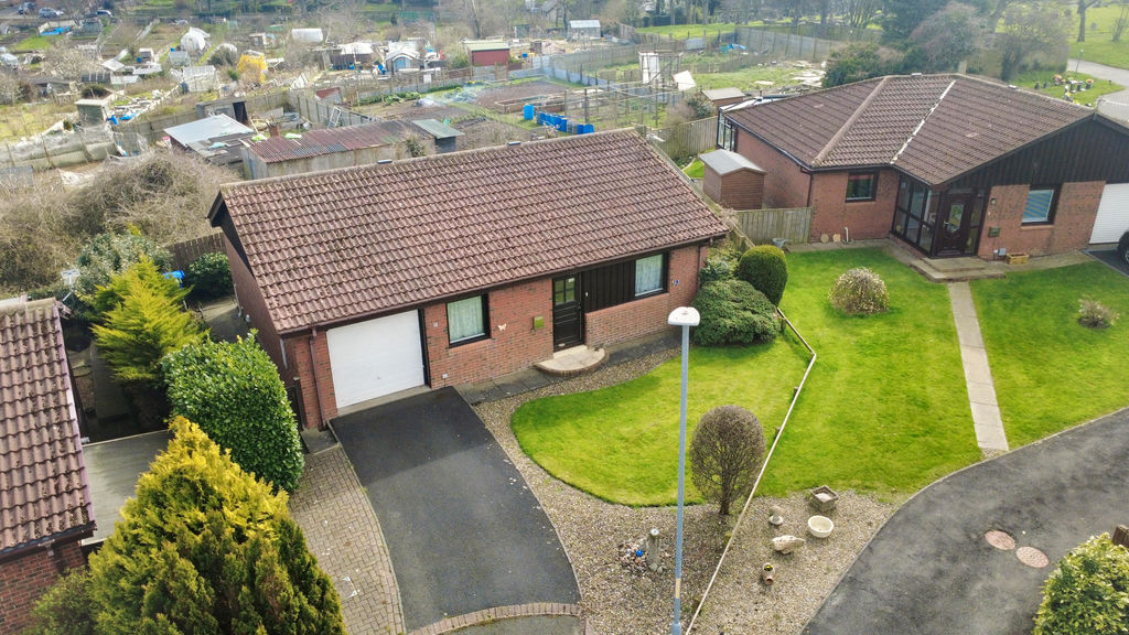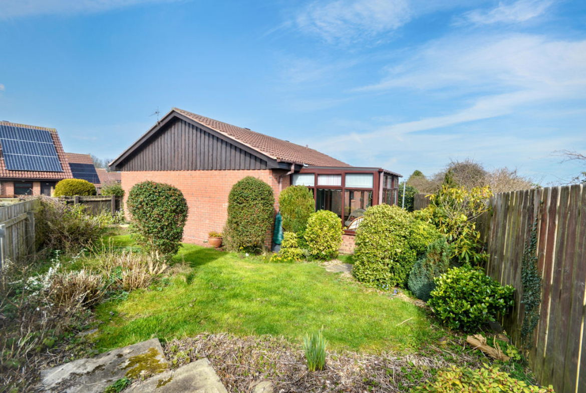 The bungalow benefits from a desirable rear aspect, backing onto allotments, ensuring it is not overlooked and providing a quiet and private setting. Externally, the home boasts a lawned front garden with a driveway leading to a garage, while a generous wrap-around garden extends to the side and rear—ideal for relaxing, gardening, or entertaining.