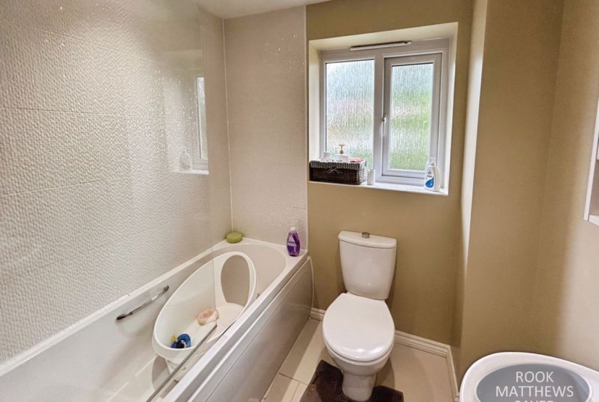 The modern, well-equipped kitchen includes a full complement of white goods, ensuring convenience from day one. The family bathroom comprises a three-piece suite.