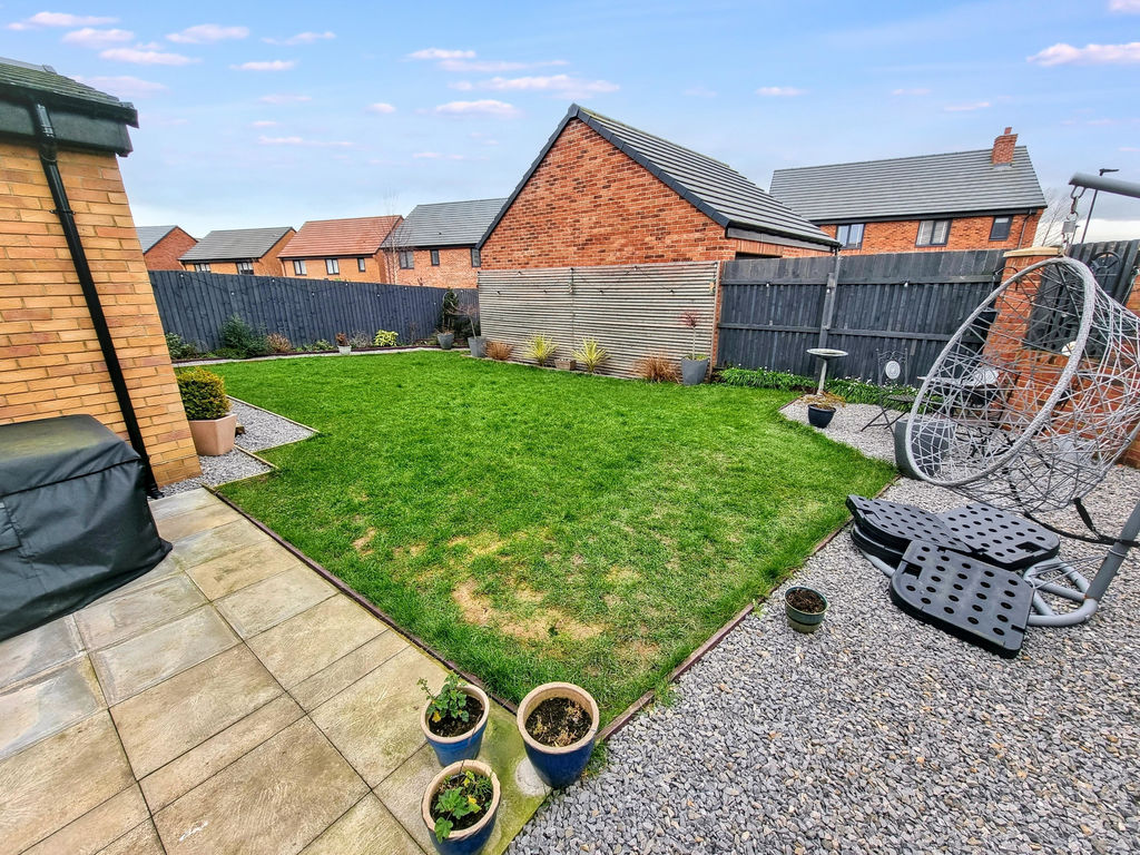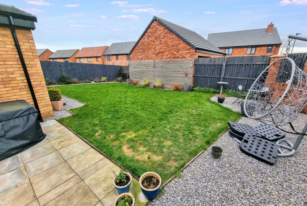 enclosed lawn area and gravel garden, offering a pleasant outdoor space ideal for relaxing or entertaining.