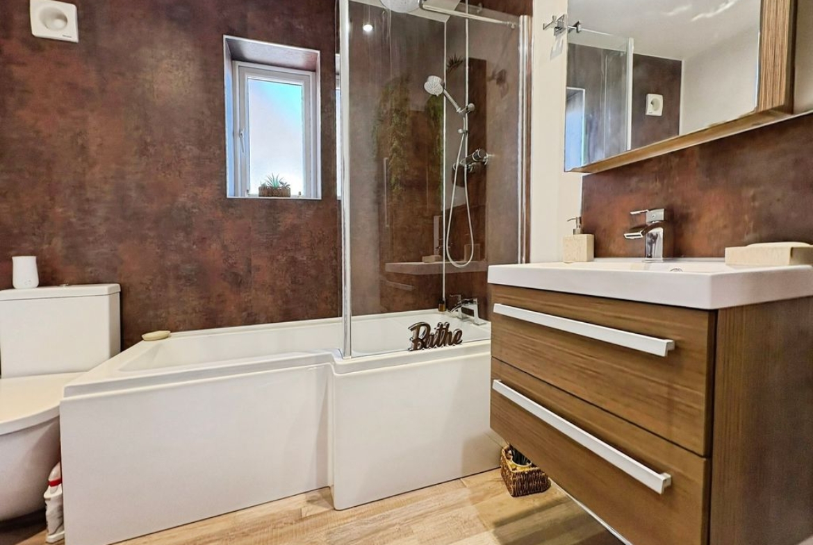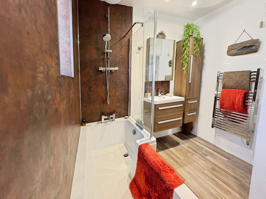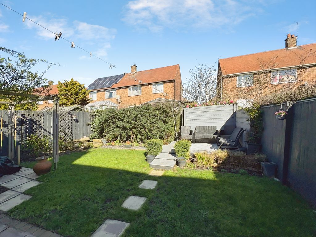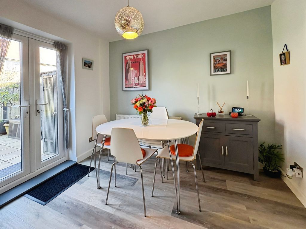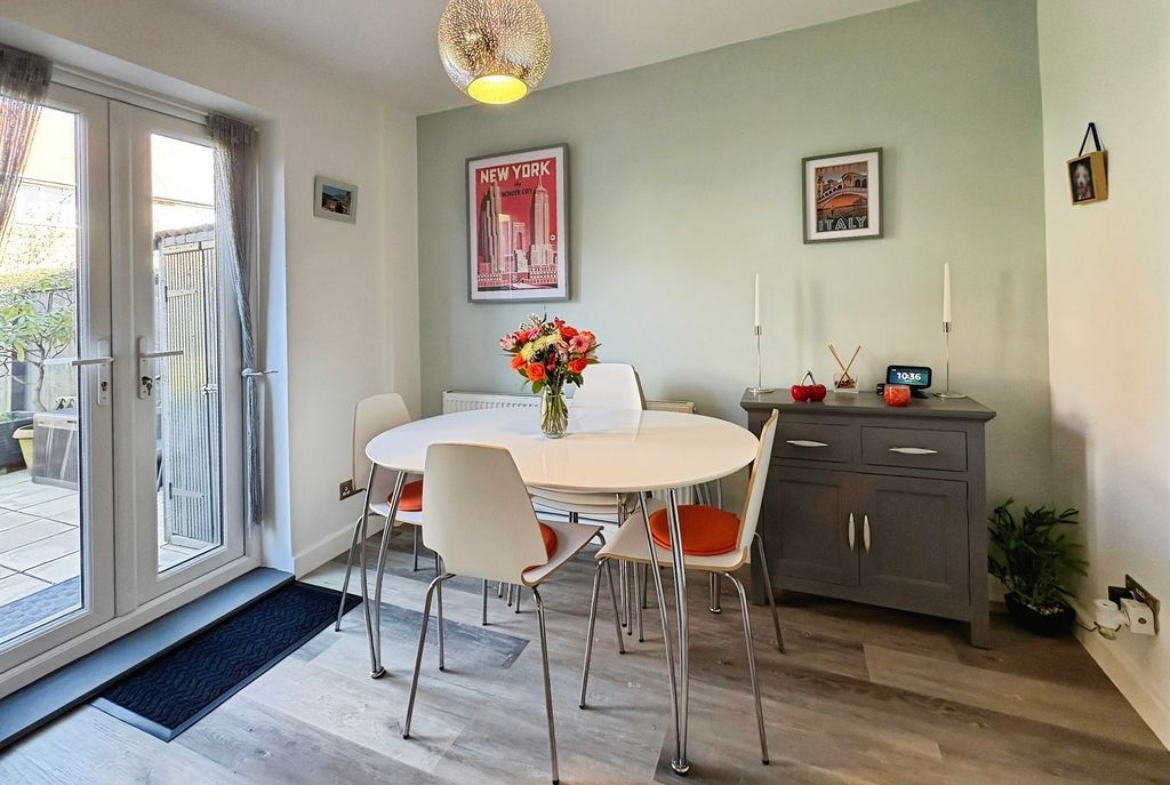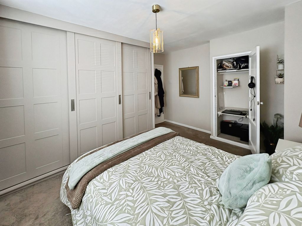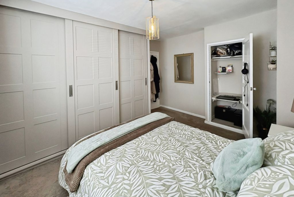 Positioned behind a generous driveway, this well-presented three-bedroom semi-detached home offers a carefully considered layout that combines traditional proportions with a more modern, open-plan rear. The living room sits to the front of the property, a well-balanced and comfortable space centred around a feature fireplace, with a large window drawing in plenty of natural light. From here, the home opens out towards the rear where a substantial dining kitchen that stretches across the width of the house. Designed with both everyday living and entertaining in mind, this space provides a seamless blend of cooking, dining and social areas, finished with contemporary units, integrated appliances and a clean, modern feel throughout. Upstairs, the property continues to impress with three well-proportioned bedrooms. The principal bedroom is particularly generous, complete with extensive fitted wardrobes and built in storage currently utilised as a home office space, while the second bedroom also benefits from built-in storage. A third bedroom offers flexibility as a guest room, office or dressing space. The bathroom has been upgraded to a stylish, modern suite with quality fittings and a sleek finish. Externally, the rear garden offers a great balance of patio and lawn, creating an outdoor space that is ideal for both relaxing and entertaining. Well located for access to local shops, schools and transport links, this is a home that delivers both space and practicality in equal measure, with a layout that feels immediately comfortable and easy to live in.