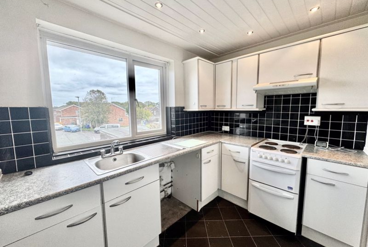 Available with no onward chain, this popular, first floor flat also enjoys a delightful pedestrianised frontage, West facing front garden and detached garage. With a 49 year lease remaining this property is likely to suit cash buyers only. This lovely home has the advantage of no onward chain and is well presented throughout. With local schools, shops, train station, bus routes and amenities close by, the location is excellent! Entrance lobby, spacious first floor landing. Lounge with large picture window, attractive fireplace and electric fire. Stylish, white fitted kitchen, two double bedrooms, one with fitted storage, modern bathroom with shower. Garden to the front, detached garage. Leasehold. 99 years from 1/3/75, with 49 years remaining, Ground Rent £15 per annum payable to