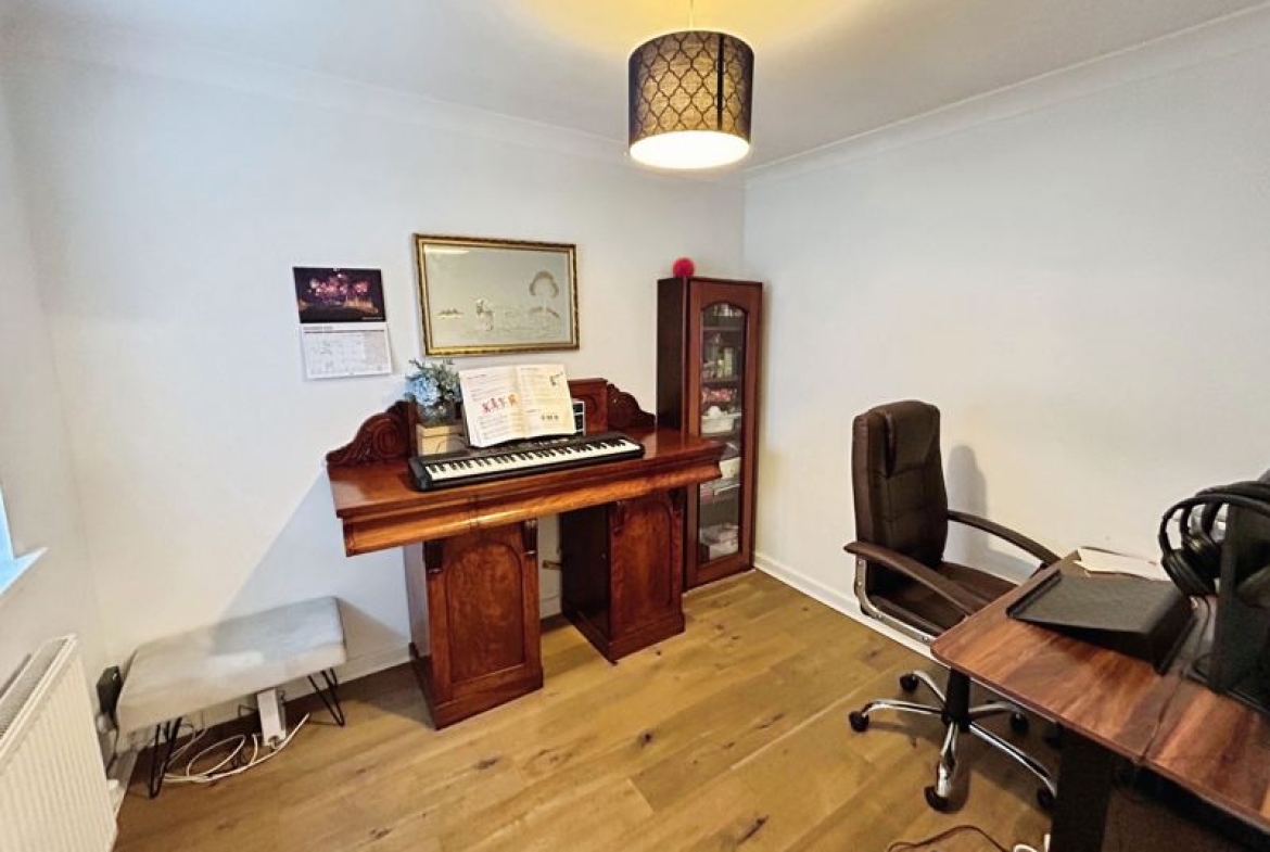 A versatile side extension currently used as an office could also serve as a fourth bedroom or playroom.