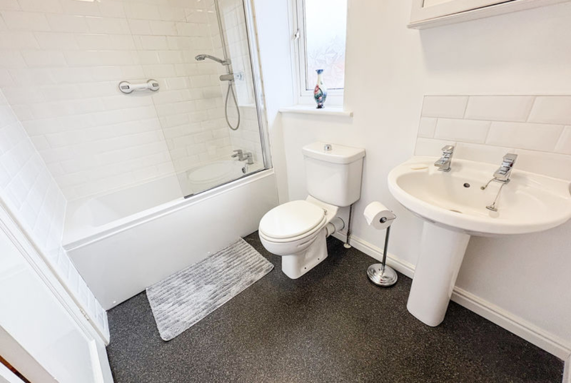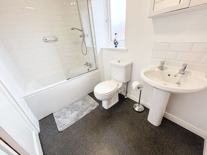 FAMILY BATHROOM: 3 piece suite comprising panelled bath, shower over, pedestal hand basin, low level wc, double glazed window to rear, heated towel rail, and part tiling to walls.