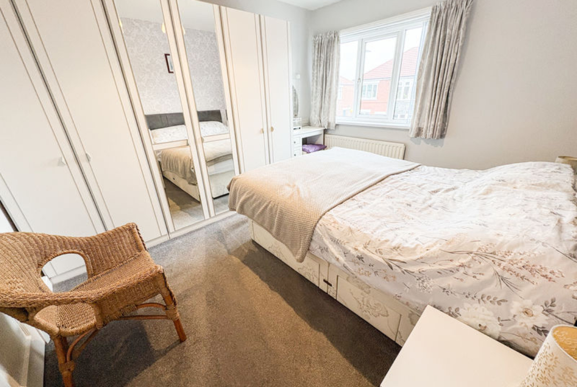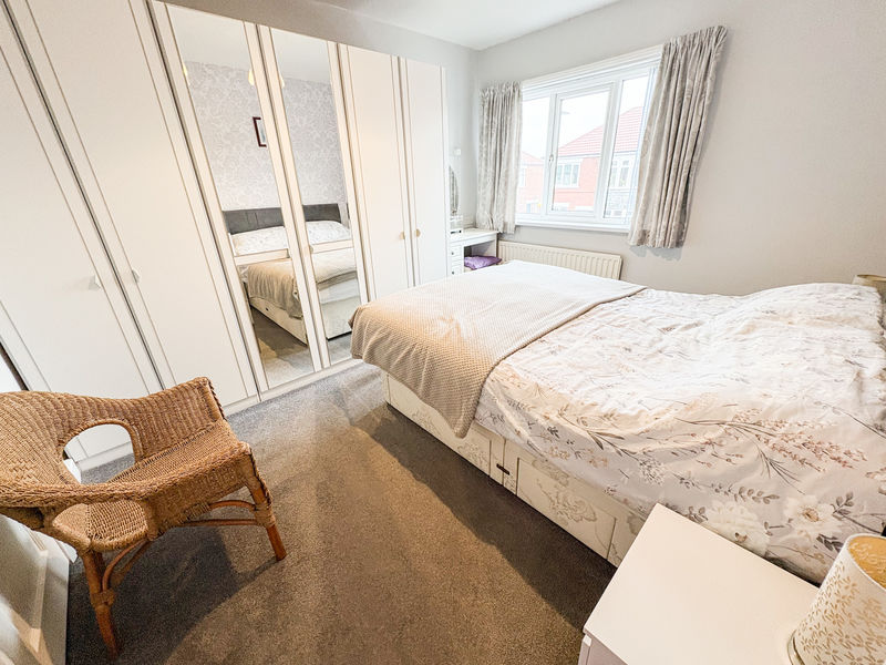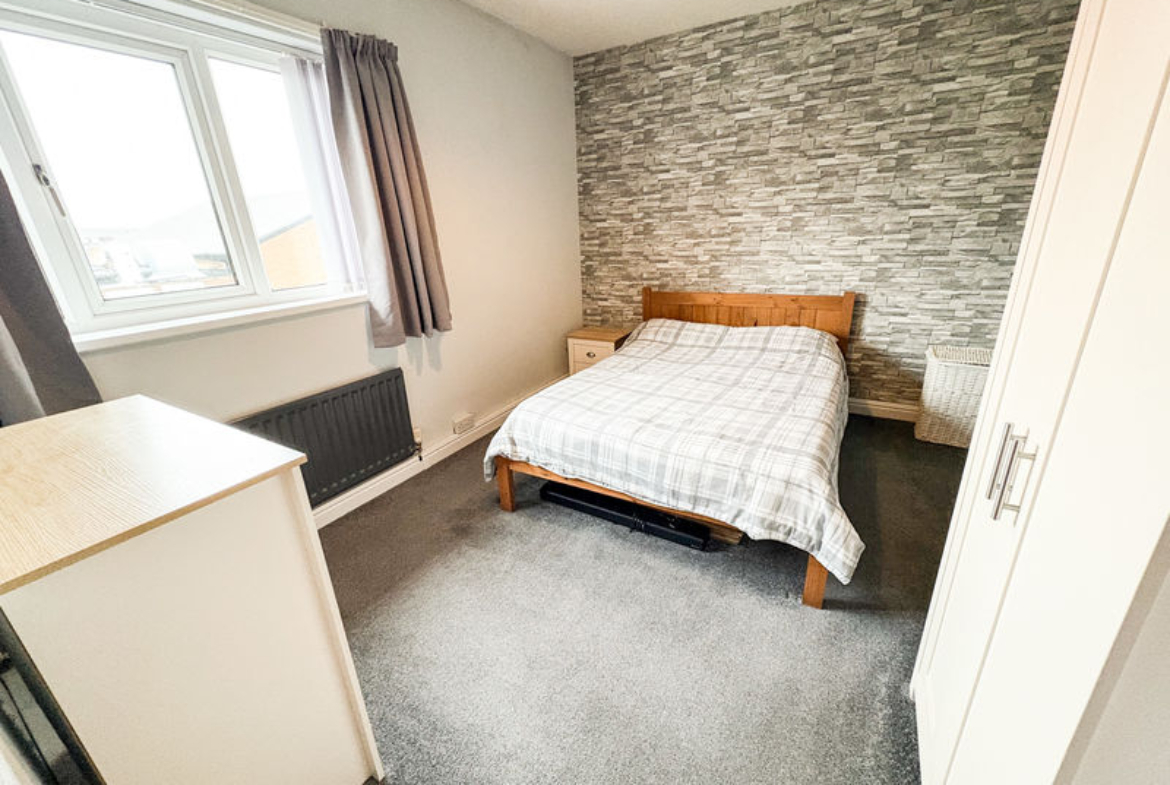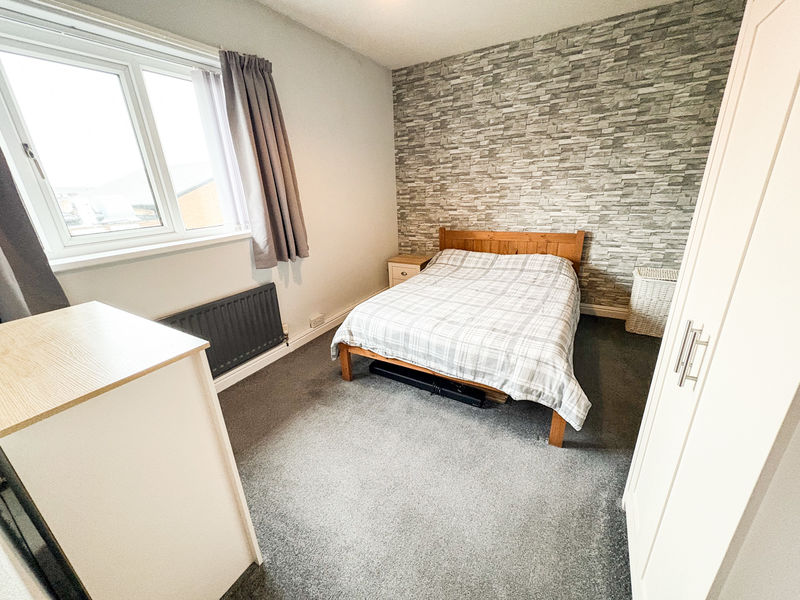BEDROOM ONE: (rear): 11’79 x 9’82, (3.59m x 2.99m), double glazed window to rear, single radiator, and built in cupboard.