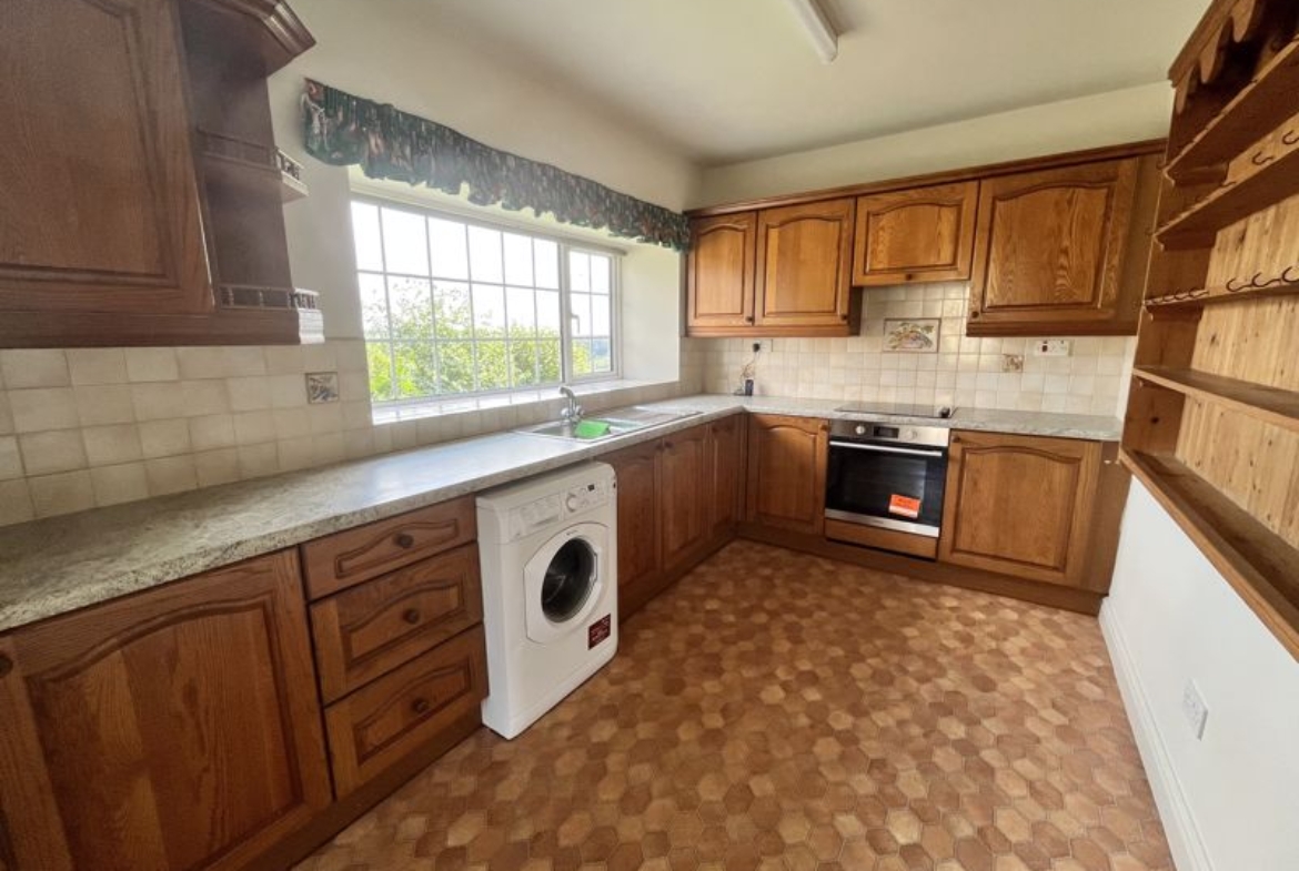 The lounge has an Inglenook fireplace with a stove, and French doors out to the rear garden. The largest of the three bedrooms includes fitted wardrobes and an ensuite shower room with an electric shower. The main bathroom also has an electric shower over the bath. In the kitchen there is a newly installed electric hob and oven and an integrated fridge freezer. A freestanding washing machine is included, although this is left as a gesture of goodwill and can be removed if required.