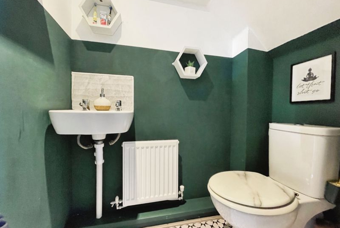 Downstairs wc Low level wc, pedestal wash hand basin, extractor fan, part tiling to walls, single radiator.