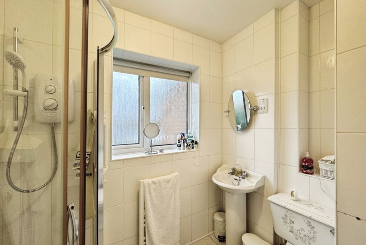 You have two generous sized bedrooms, both of which have been carpeted throughout and come with fitted wardrobes, offering excellent storage. The family shower room has been fully tiled floor to ceiling and complimented with W.C., hand basin and walk-in shower.