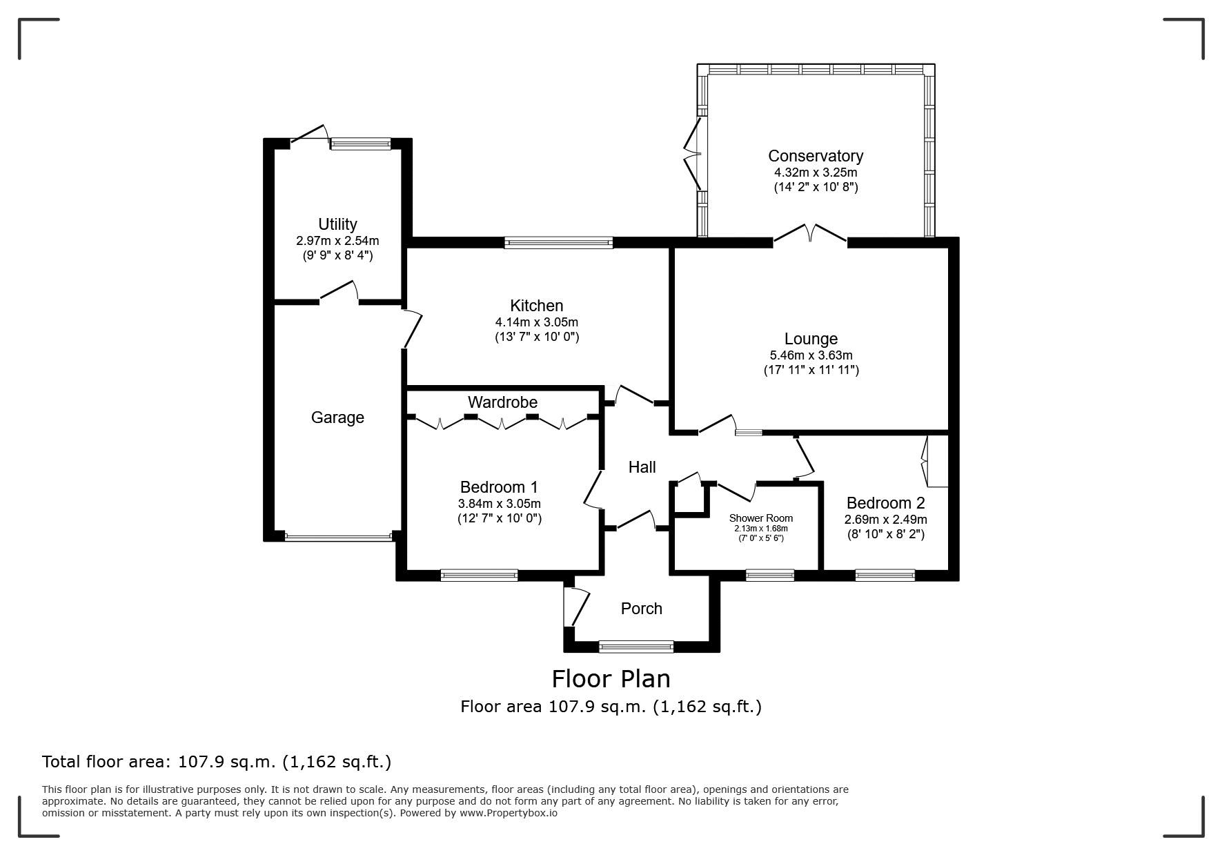 Conservatory: 14’2 x 10’8 (4.32m x 3.25m)