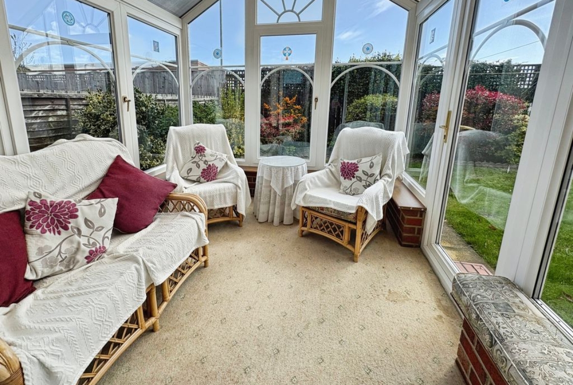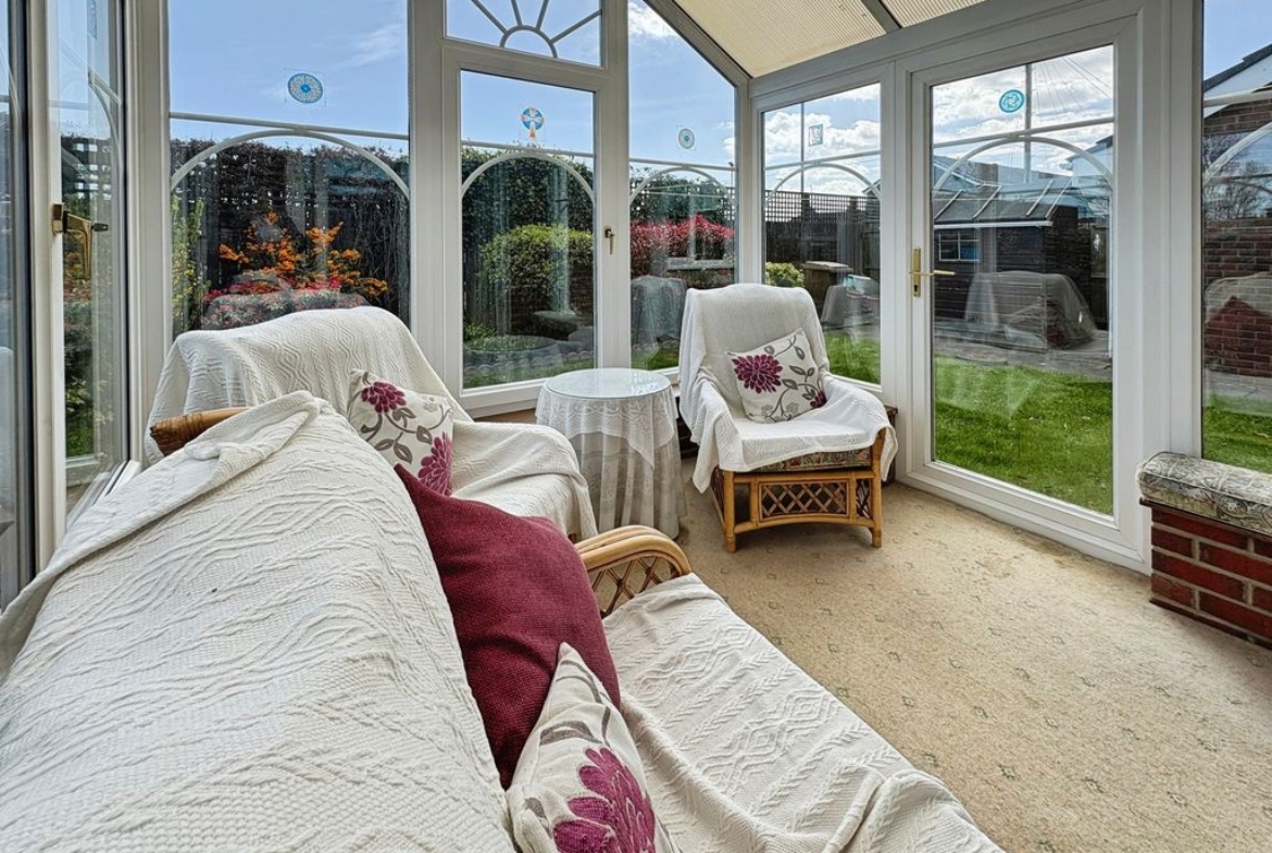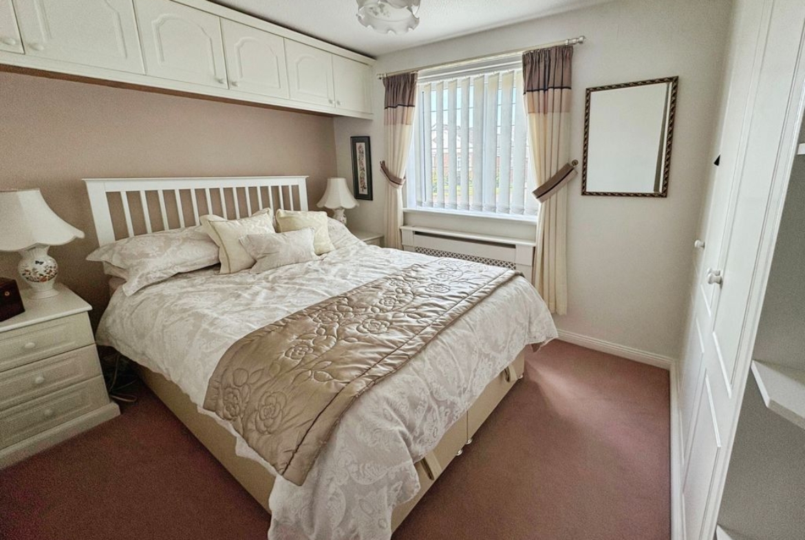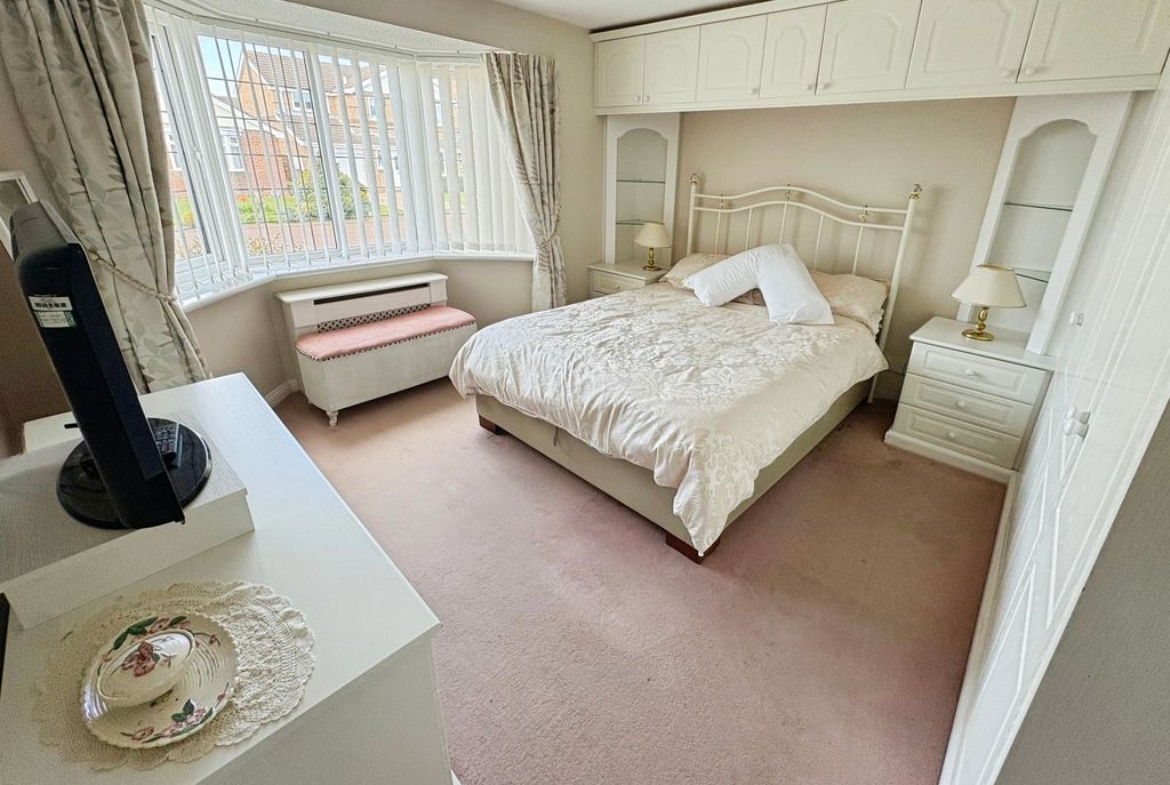 The bungalow boasts three bedrooms; the main bedroom and bedroom two have a good range of wardrobes and bedroom furniture offering ideal storage solutions, bedroom three is of a generous size and currently used as a formal dining room. The bathroom is both stylish and practical with both a bath and separate shower catering to both preferences. Externally, to the front there is a garden with a double length driveway leading to a detached garage with electric roller door ensuring plenty parking and storage options.
