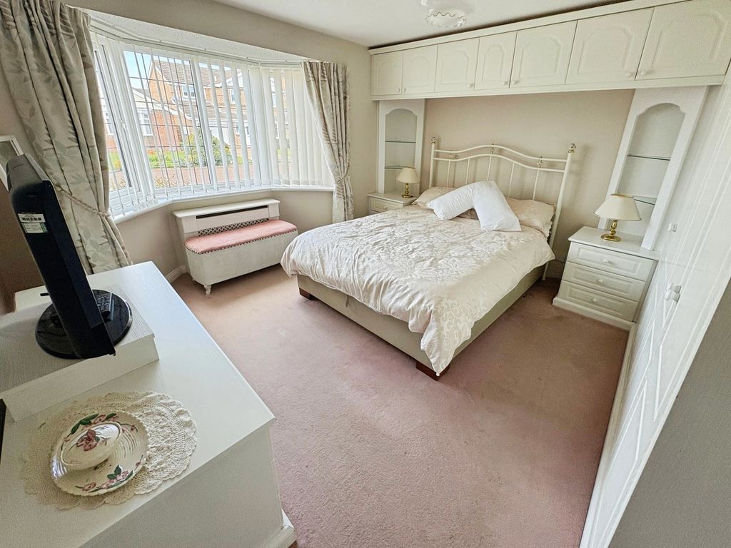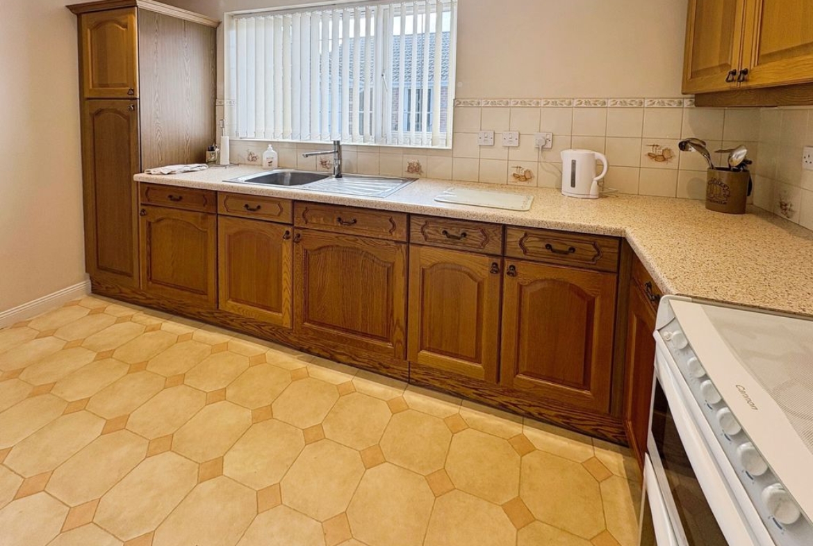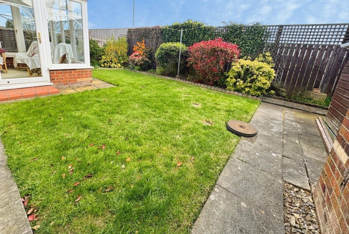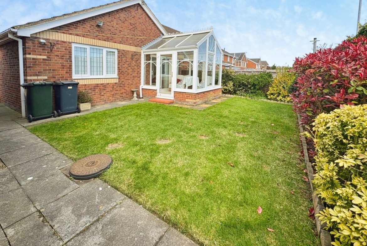 The bungalow boasts three bedrooms; the main bedroom and bedroom two have a good range of wardrobes and bedroom furniture offering ideal storage solutions, bedroom three is of a generous size and currently used as a formal dining room. The bathroom is both stylish and practical with both a bath and separate shower catering to both preferences. Externally, to the front there is a garden with a double length driveway leading to a detached garage with electric roller door ensuring plenty parking and storage options.