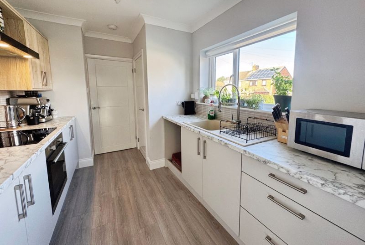 There is a modern kitchen benefiting from natural light and complemented by a practical utility room. The thoughtful layout caters to day-to-day living and enhances the overall flow of the property.