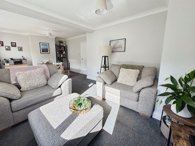 2 UPVC windows overlooking south facing garden, living and dining space with radiator
