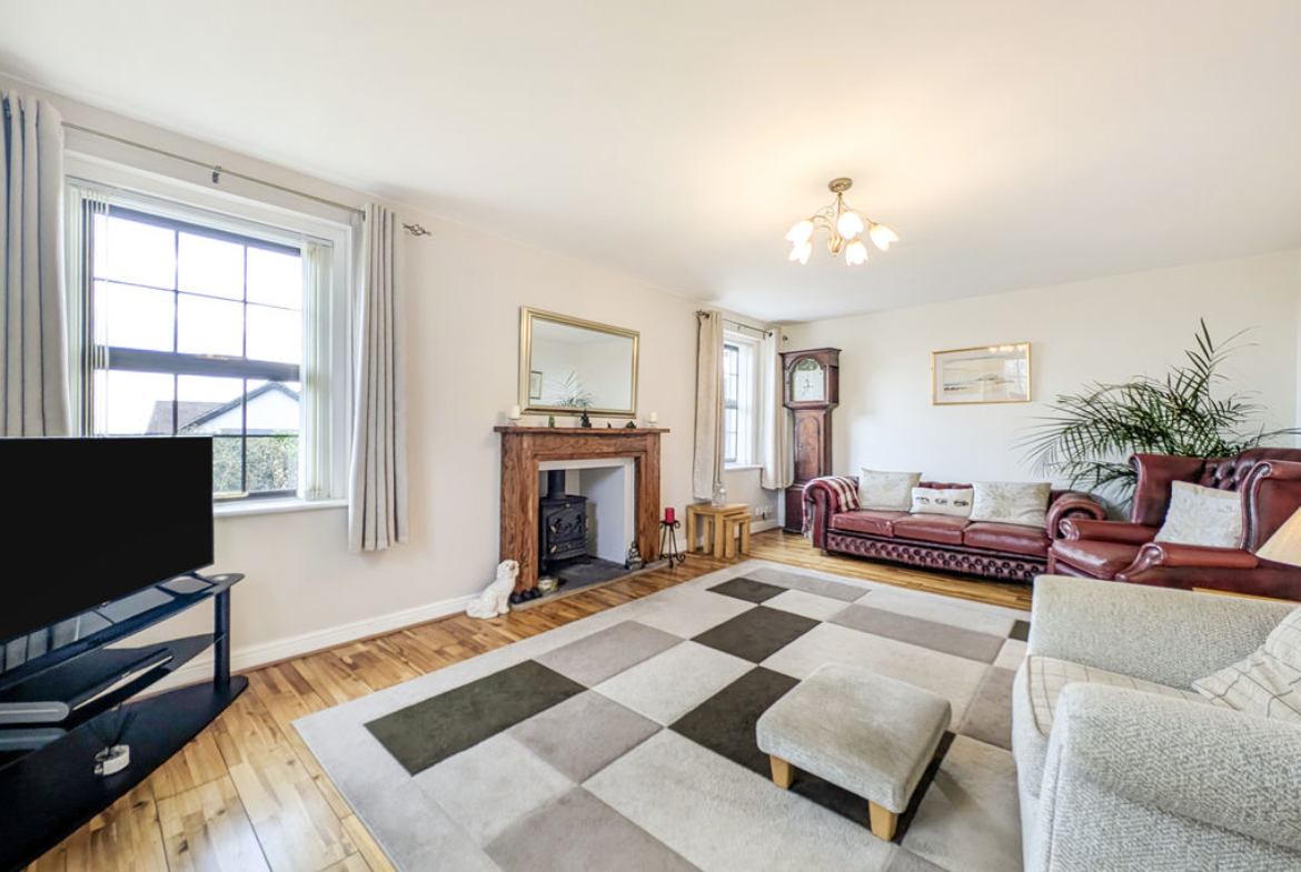 Dual aspect with UPVC double-glazed windows | Radiator | Wood veneer floor | Multi fuel stove set on a stone flagged hearth and a wood surround