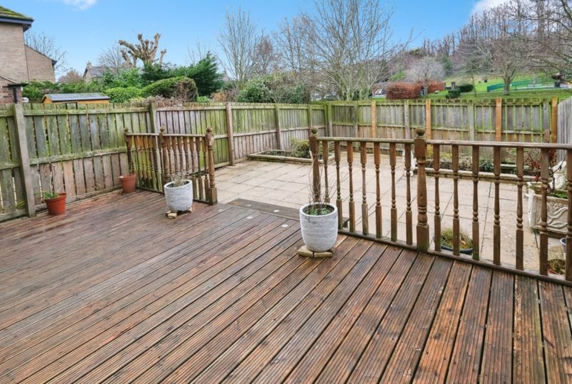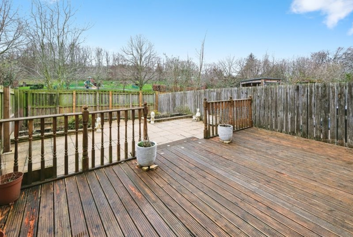 Drive to the front, and a low maintenance rear garden split into two main sections consisting of decking and paving, with fenced boundaries