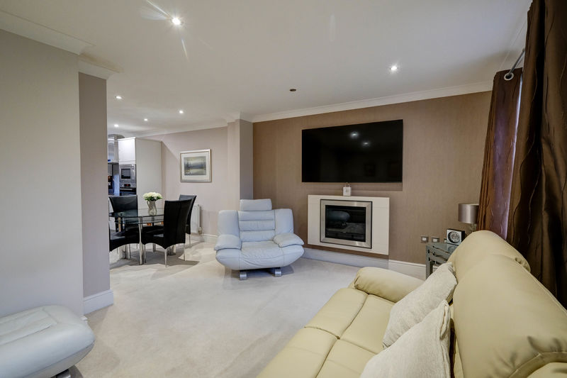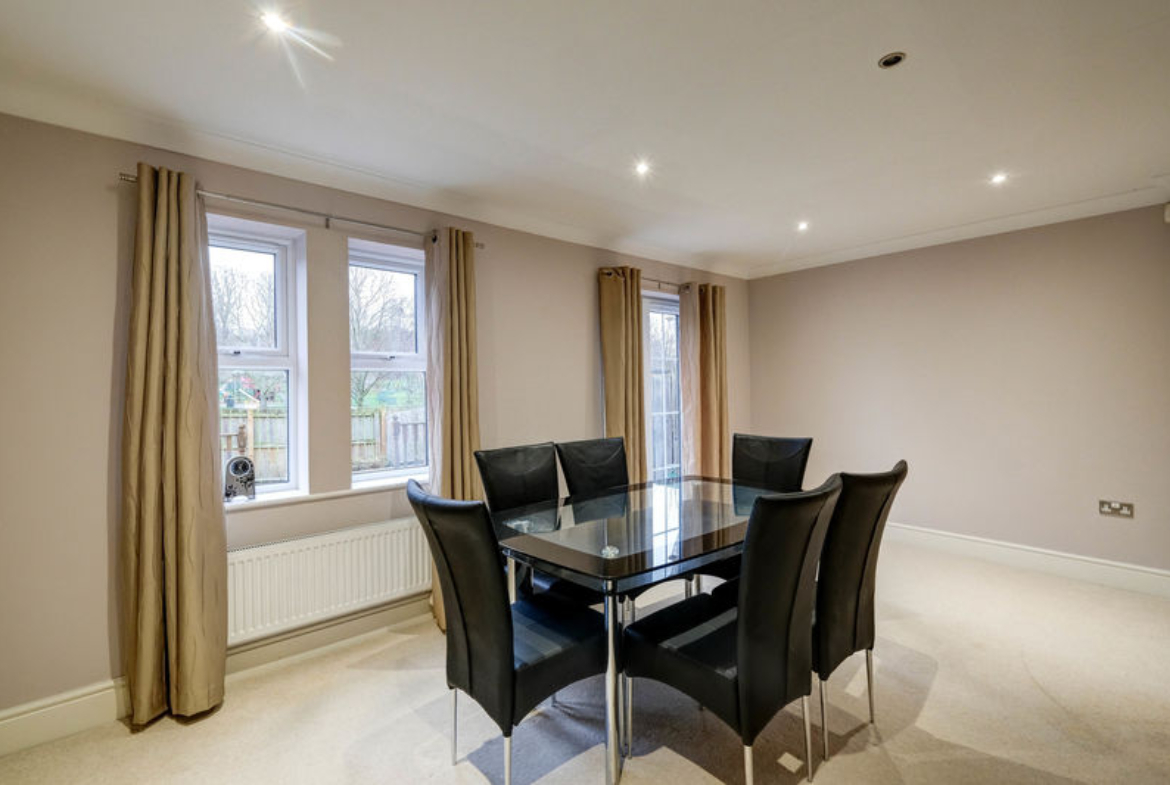 The ground floor includes a spacious reception room spanning the full width of the property with direct access to the rear garden; this space can alternatively be used as an additional bedroom. The main living accommodation is on the first floor, where an open-plan layout links the living room, dining area and kitchen. The living area is at the rear of the property and has superb views of the park beyond the rear garden. There is also a home office on this level, which can serve as a fourth bedroom if required.