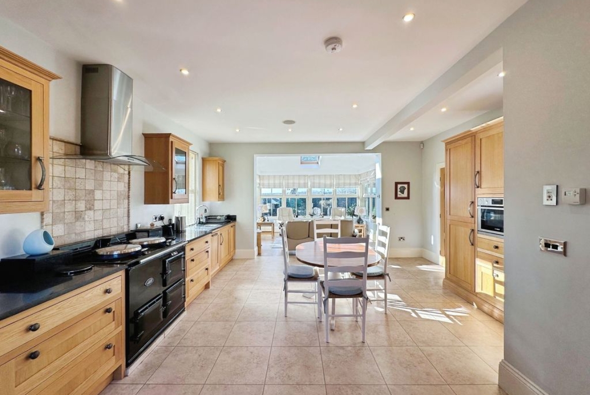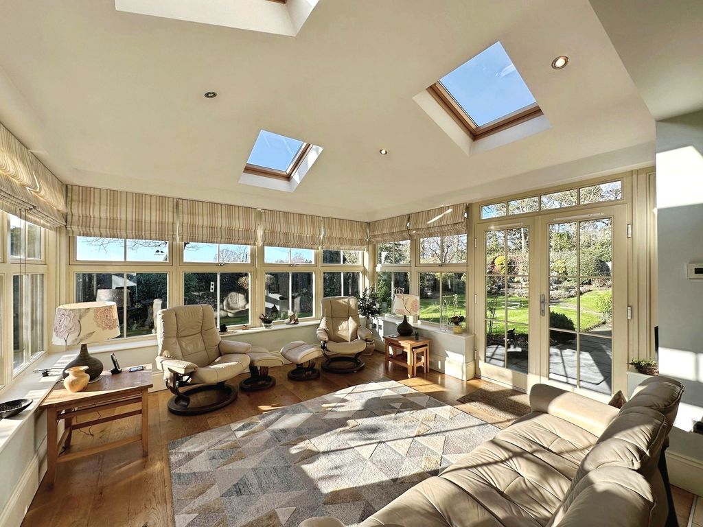 The kitchen and sunroom are the heart of this grand home. They have been exquisitely designed, so that they blend style and functionality, ideal for both everyday living and entertaining. The generously appointed kitchen boasts high spec units and a range of integrated appliances, that include fridge/freezer, dishwasher and aga cooker. The many wall and base units offer an abundance of storage. The light and airy sunroom is one of a kind and offers uninterrupted views with access to a patio area, where you can soak up the rays. The sunroom is a great addition, allowing its new owners to relax and soak up the picture-perfect garden views. You further benefit from a convenient utility room and a beautifully finished downstairs W.C.