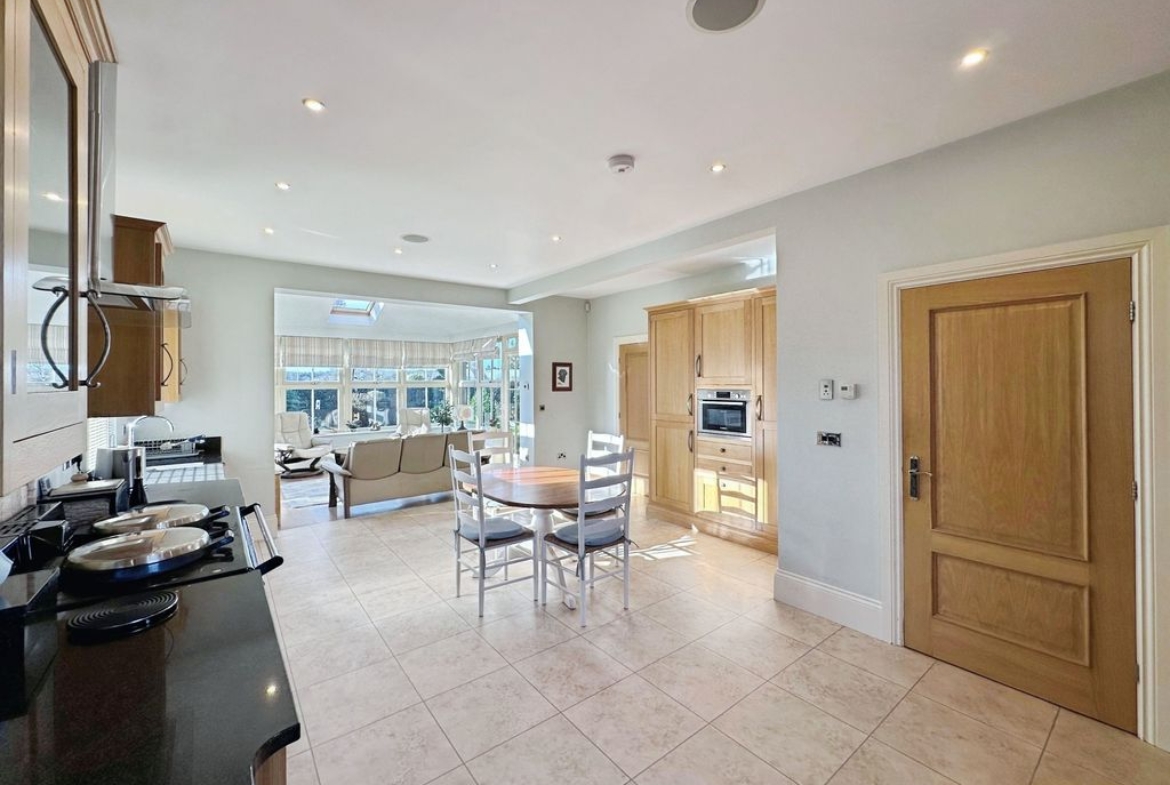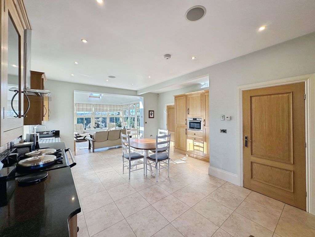 Upon entering, you are greeted by a large driveway which leads to the grand entrance of the property and into the convenient porch, which doubles up as a cloakroom. This leads seamlessly into the hallway, from here the main lounge can be accessed. The substantial sized lounge is flooded with natural light due to the dual aspect windows, which offer views over the front driveway and side patio. The lounge has been complimented with an electric fire and surround, adding a touch of warmth. The spacious formal dining room offers ample space for a family dining table and chairs. To the rear of the impressive dining room are double-glazed patio doors, which open onto the rear garden, allowing for a seamless transition between indoor and outdoor.