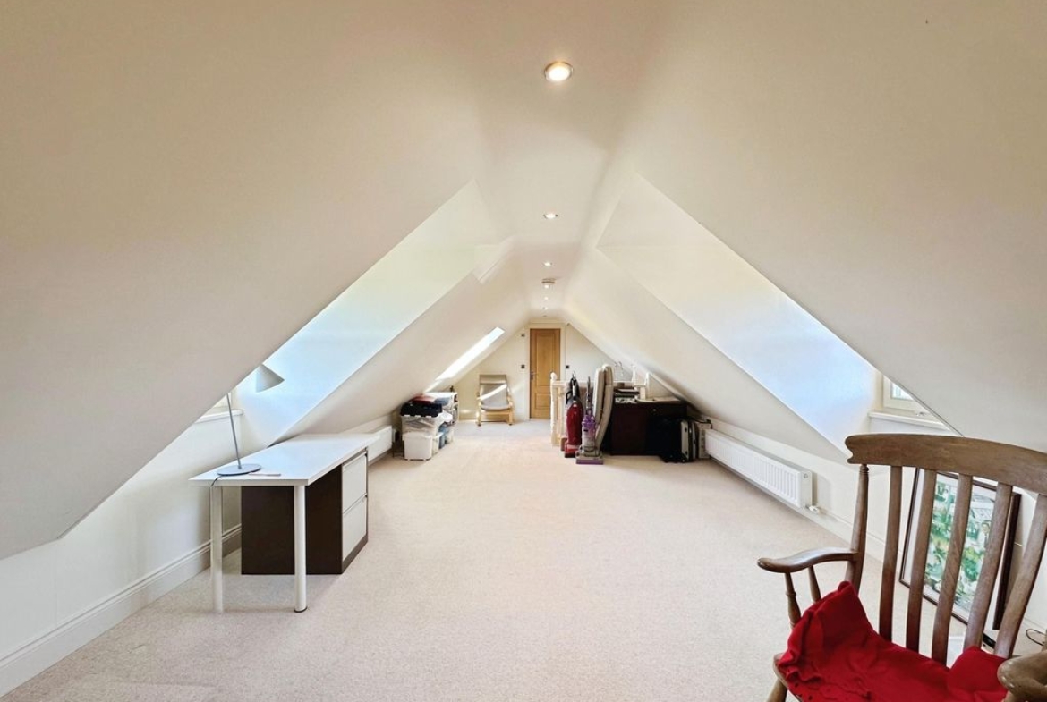 Ascending to the second floor, you are greeted with a vast open space which could serve many purposes. From here a further bedroom and bathroom can be accessed. The bright and airy bedroom benefits from two dormer windows, offering fantastic views of the surrounding fields. The bathroom has been beautifully finished with a wash basin, WC and separate shower.