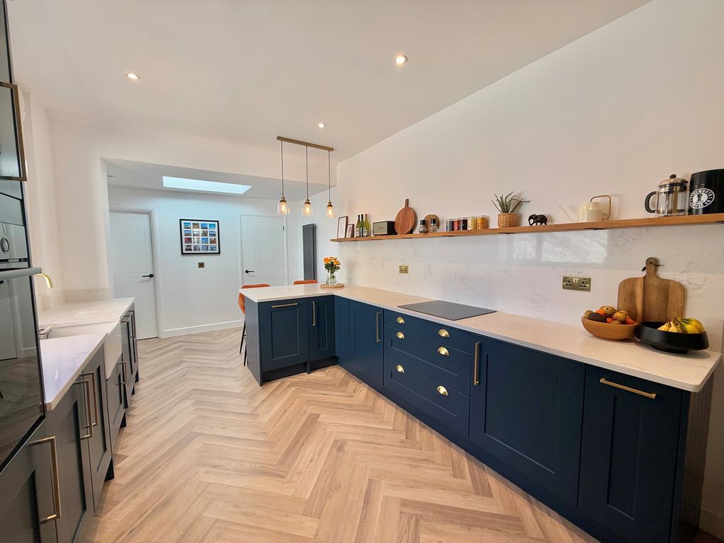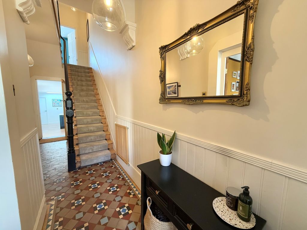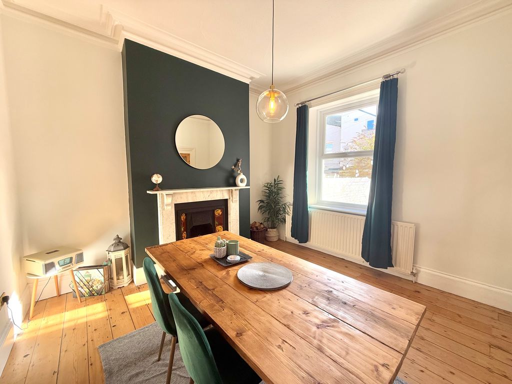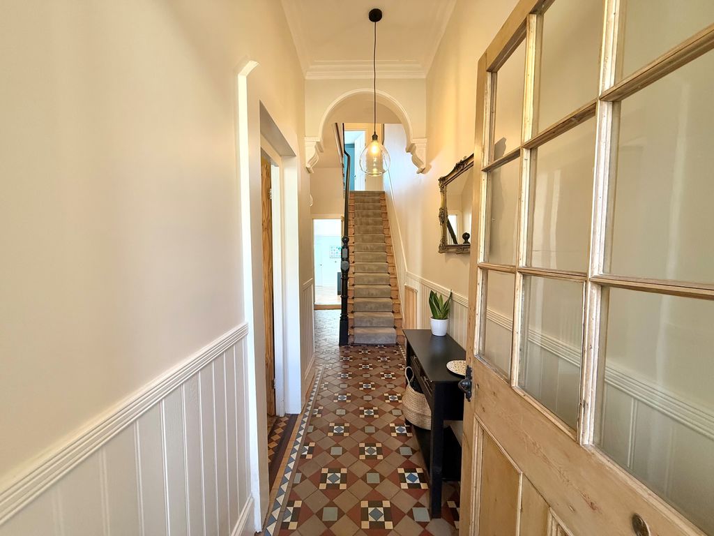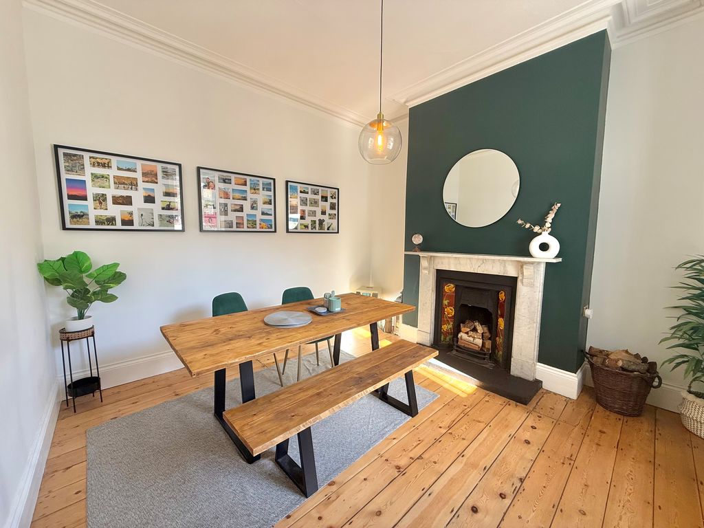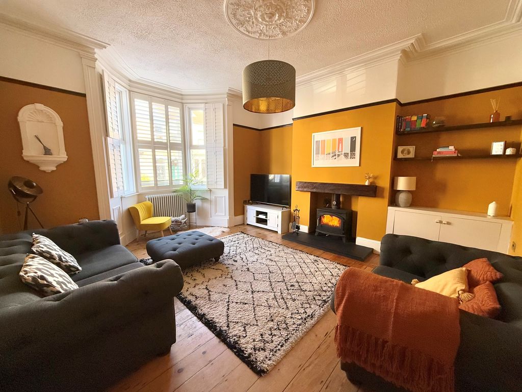 An exceptional three story Victorian terraced home nestled in the vibrant heart of Whitley Bay. Just a short walk from the beach and promenade, local schools, shops and Metro, offering an active coastal lifestyle! This enchanting home has been carefully updated to retain its period charm and offers everything a growing family could wish for! Impressive entrance vestibule and hallway with feature turned staircase, stunning lounge with feature bay window, shutter blinds and multi fuel burning stove. To the rear of the property, separate dining room with marble fireplace, cast iron fire, tiled inset, hearth and window overlooking the rear garden. Superb extended kitchen with breakfast bar, contemporary units, quartz worktops, integrated appliances, skylight, downstairs cloaks w.c, and door to the rear town garden. To the first floor, split level landing, stunning family bathroom with freestanding slipper bath, walk in shower and three double bedrooms. On the second floor, there are a further two double bedrooms one with fitted wardrobes and Velux windows. Externally, there is an enclosed rear town garden and to the front, a garden with views of the sea and a lovely spot to enjoy the sunset. A beautiful home with so much to offer, which we simply love!