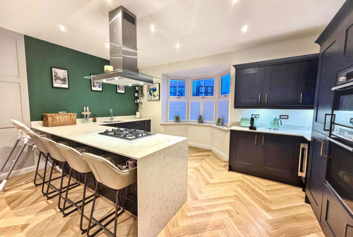 Fitted units incorporating; 1.5 stainless steel sink, space for washing machine & tumble dryer, cupboard housing boiler | Composite double-glazed external rear door | LVT flooring