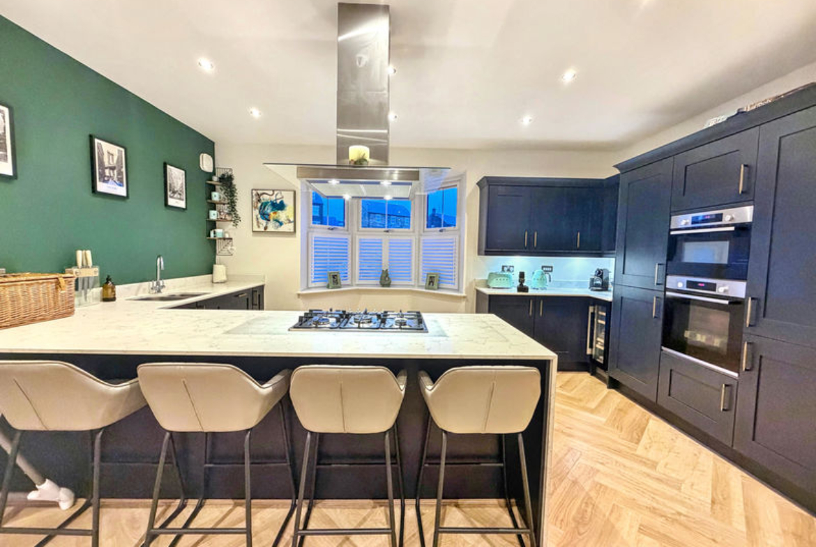 A beautifully presented four-bedroom detached family home on Alnwick’s prestigious Peters Mill development, featuring two reception rooms and an open-plan kitchen/dining space with bi-fold doors to a private rear garden, two en-suite bedrooms plus potential fifth bedroom, double garage with EV charging, and excellent access to Alnwick’s historic town centre, coastal routes, and rail links to Newcastle and Edinburgh.