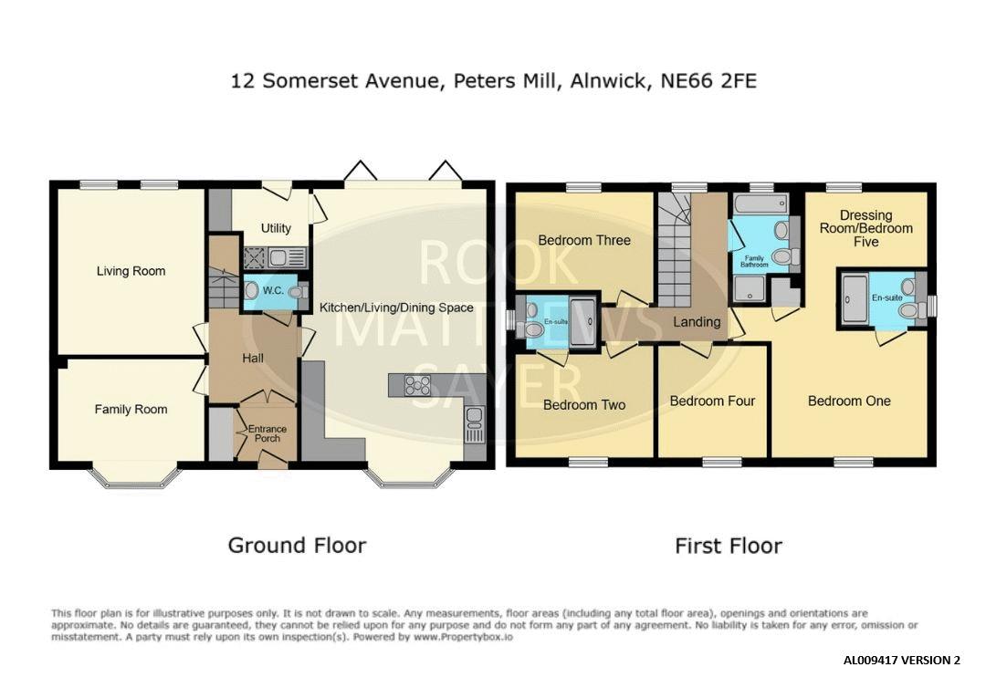 Accommodation includes a master bedroom with en-suite and an adjoining room currently used as a dressing room that could be configured as a fifth bedroom if required. A second double bedroom also benefits from an en-suite, while two further double bedrooms and a family bathroom complete the layout. The front of the property enjoys an open aspect, and the private rear garden offers outdoor space for relaxation and play.