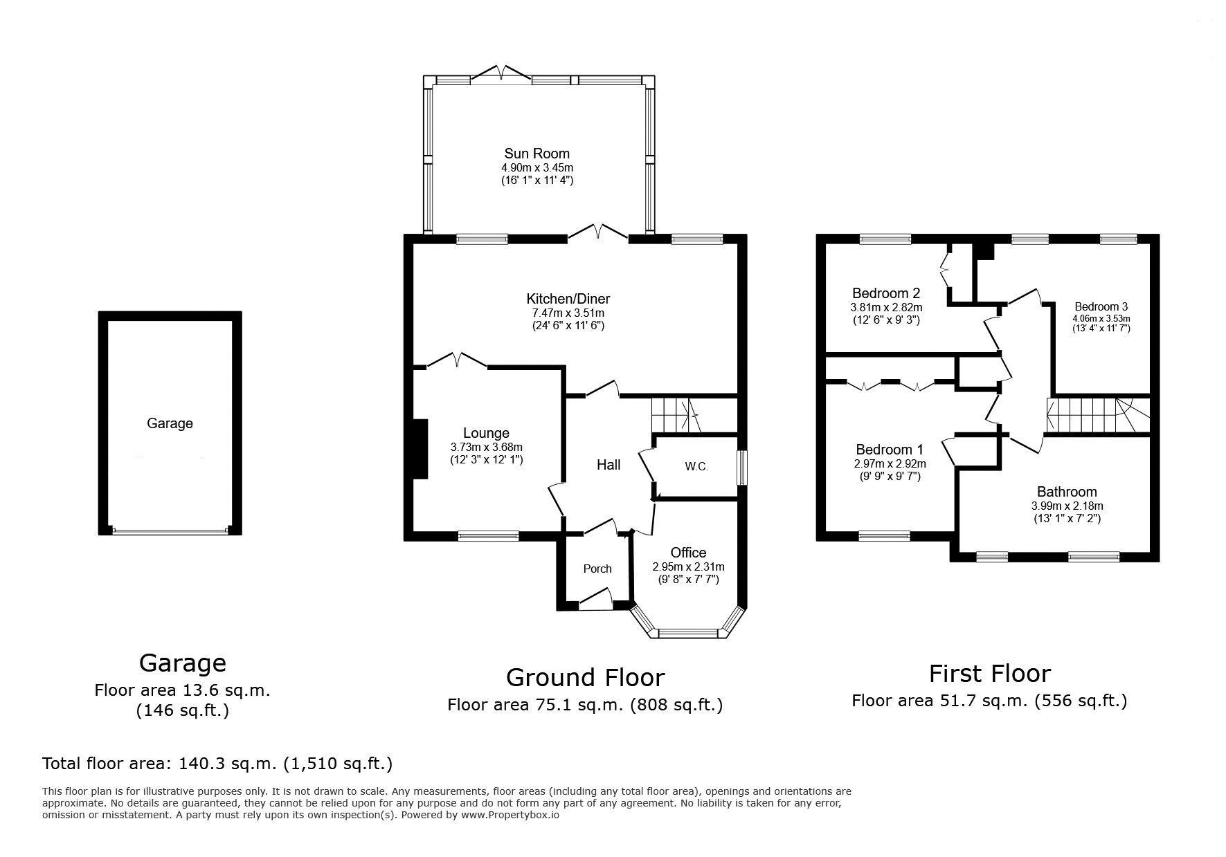 Lounge: 12’31 x 12’17 (3.73m x 3.68m)