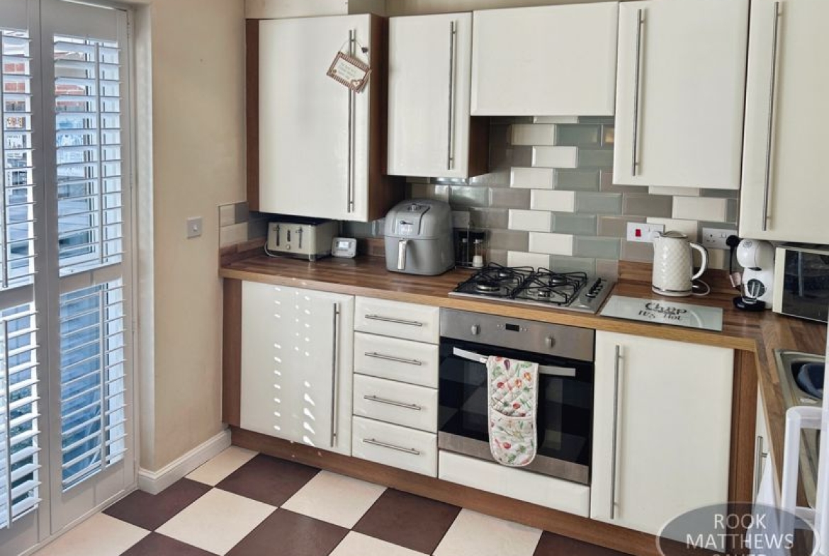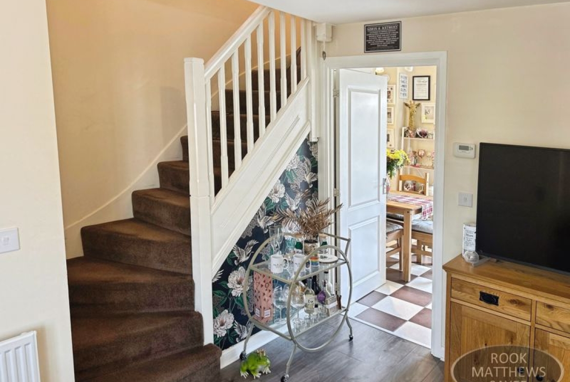 Briefly comprising entrance hallway with WC. There is a sitting room to the front with dining kitchen to the rear with French doors leading to the rear garden. To the first floor are 2 good size bedrooms and a family bathroom with shower. There is a generous southerly facing garden to the rear with patio area with driveway to the front.