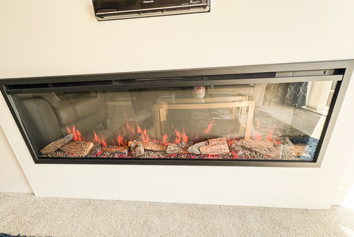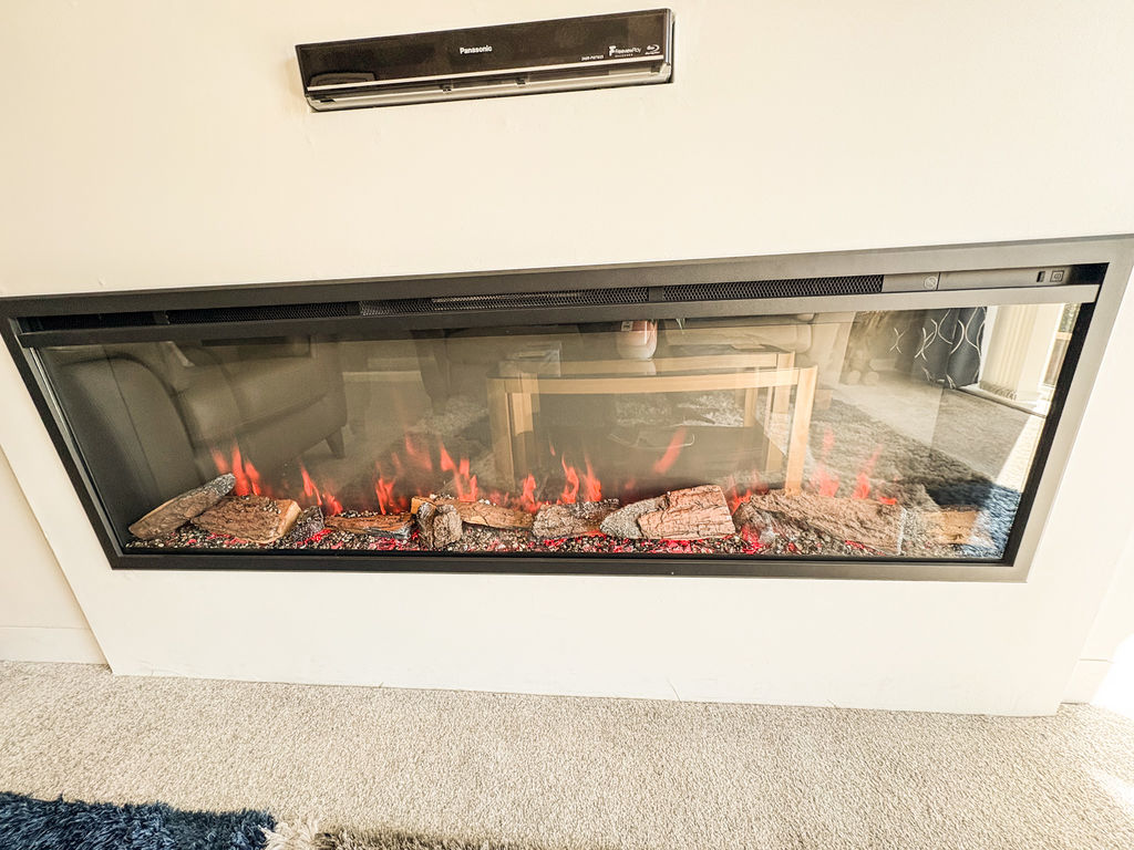 Double glazed door with side panels to the rear garden, with media wall and fire fitted.