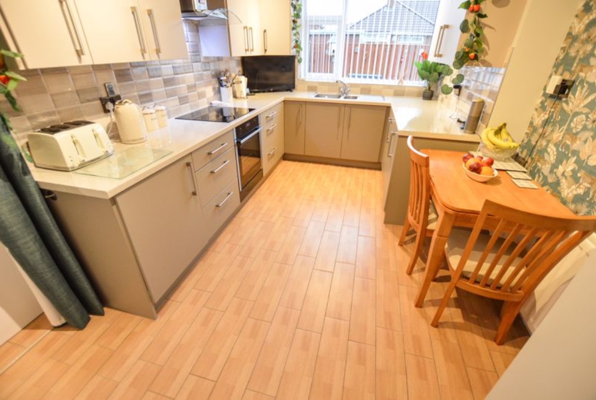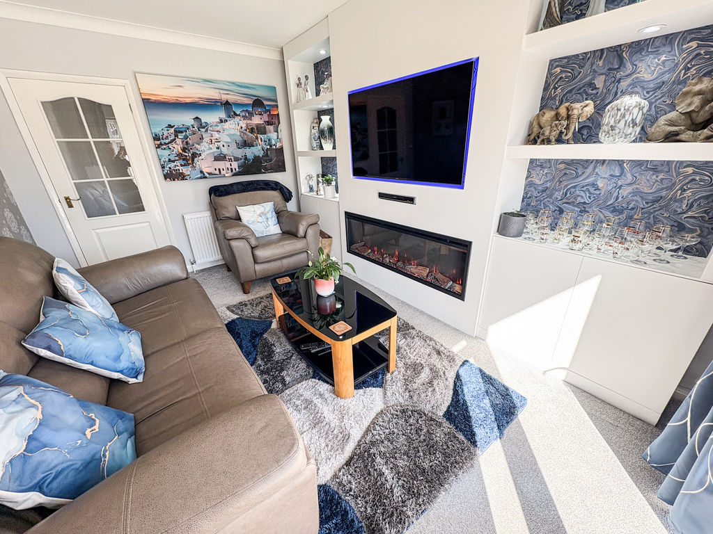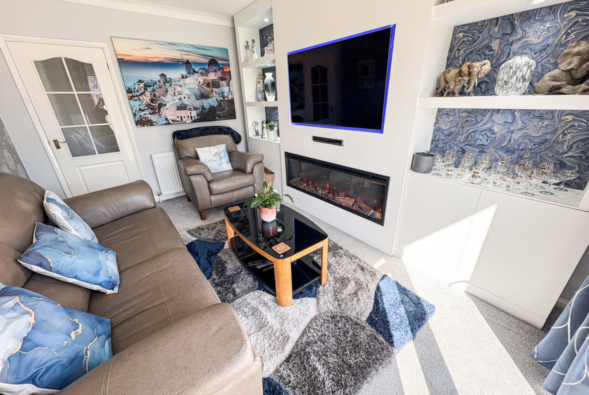 Upon entering, you are welcomed by a spacious hallway leading to a charming front lounge, which features an attractive fireplace and could also serve as an additional bedroom if desired. To the rear, a separate lounge provides a cosy and inviting space for relaxation , with a beautiful media wall and electric fire built in . The heart of the home is the outstanding, newly refitted family dining kitchen, designed to a high standard with modern fittings and ample space for entertaining.